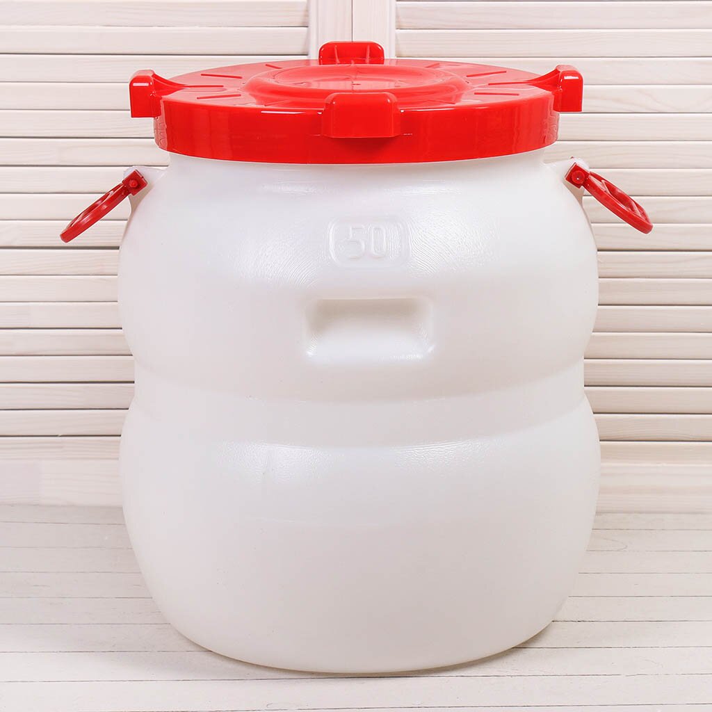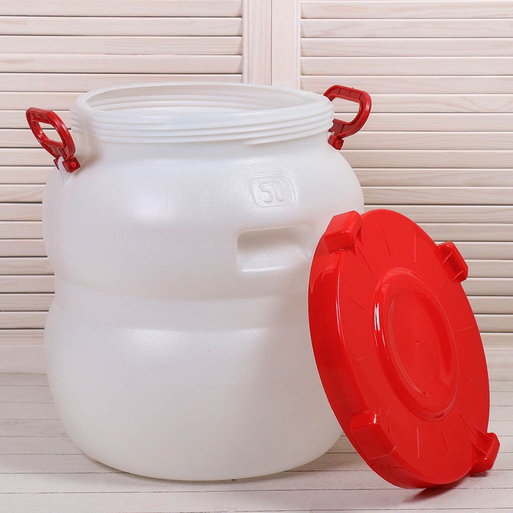 Бочка полиэтиленовая 50 литров с широкой горловиной - это тара с комфортным свободным доступом внутрь. Такую пластиковую емкость удобно наполнять, вычерпывать, мыть, дезинфицировать и просушивать при повторном употреблении. Пластиковая бочка Радиан изготовлена из пищевых пластмасс, укомплектована навесными ручками и плотно навинчивающейся крышкой с прокладкой.