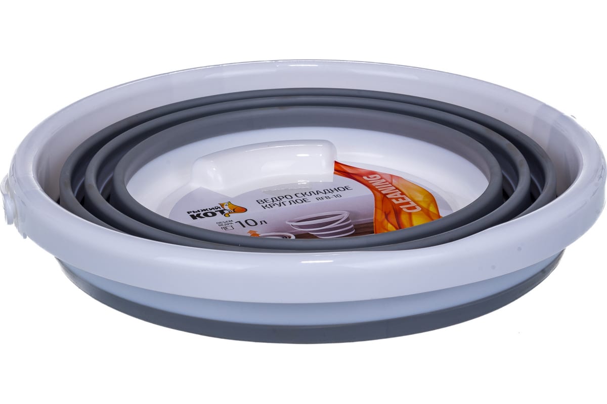 Складное круглое ведро Рыжий кот RFB-10 10 л 003918 используется для хозяйственно-бытовых нужд.