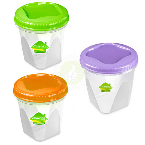 Банки «Тондо» подходят для хранения различных продуктов, замораживания в морозильной камере и разогревания в микроволновой печи (без крышки). Прозрачная колба позволяет видеть содержимое, а плотно прилегающая винтовая крышка обеспечивает безопасную транспортировку пищи. Банки удобно ставить одну на другую для экономии места в холодильнике или шкафу. Можно мыть в посудомоечной машине.