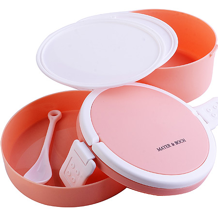 Контейнер с крышкой предназначен для хранения готовых блюд. Внутри контейнер состоит из 2-х секций разного размера, в комплекте имеется ложка. Контейнер снабжен двухсторонним замком, а также удобными ручками для переноски. Ручки складываются. Контейнер изготовлен из пищевого полипропилена, который выдерживает температуру от -20 до 120 градусов, благодаря чему контейнер можно использовать в посудомоечной машине. Не предназначен для жидких продуктов.