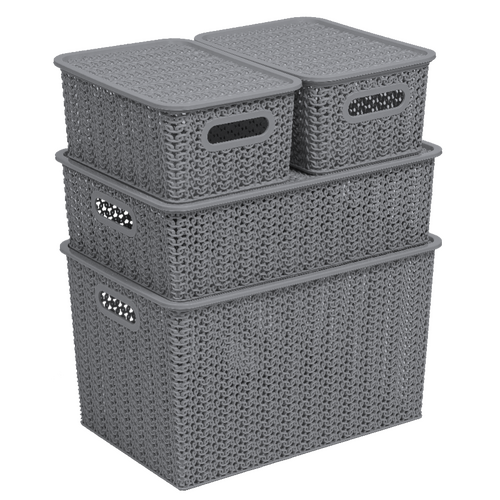 Корзинка пласт. Вязь 3л 235х173х105мм с крышкой серая 531118