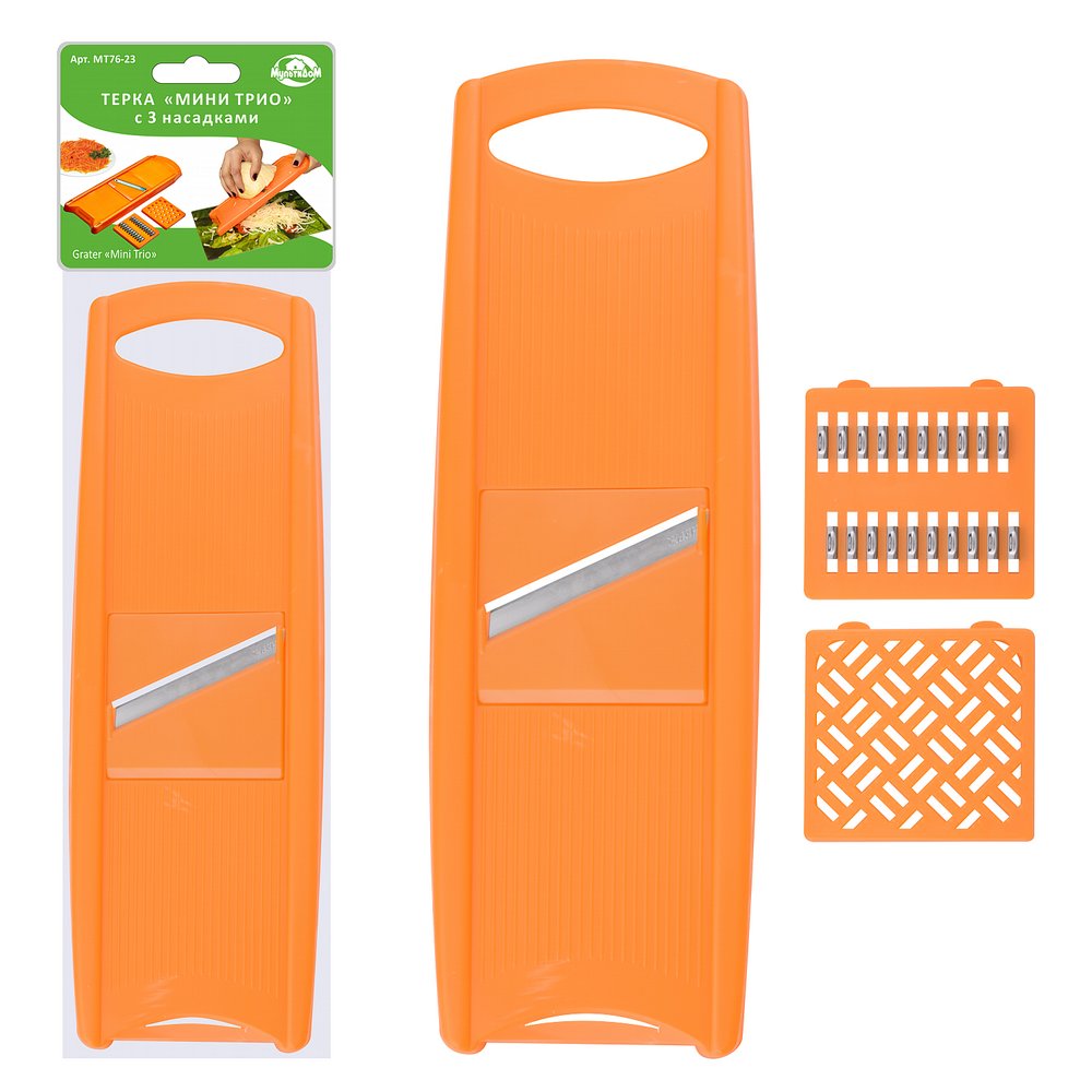Терка плоская МультиДом МИНИ ТРИО 27см с 3 насадками пласт. МТ76-23
