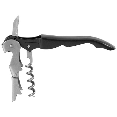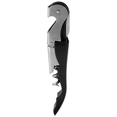 (Настоящие профессионалы сомелье предпочитают работать двухступенчатым ножом. Считается, что он более удобен, за счет того, что открывание бутылки происходит в два этапа. Сначала происходит сдвиг пробки, а затем уже ее извлечение. Двухступенчатый нож сомелье особенно актуален к использованию, если сомелье открывает очень старую бутылку вина, пробка в которой могла пересохнуть и быть очень хрупкой. Трудно открываются бутылки с вином, в которых пробка, наоборот слишком переувлажненная. В этом случае также, чтобы предупредить слом пробки, стоит воспользоваться двухступенчатым ножом сомелье.)