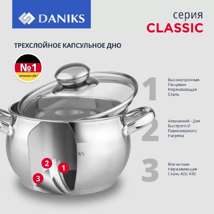 Кастрюля нерж Daniks Классика1.9л SD-16 204071
