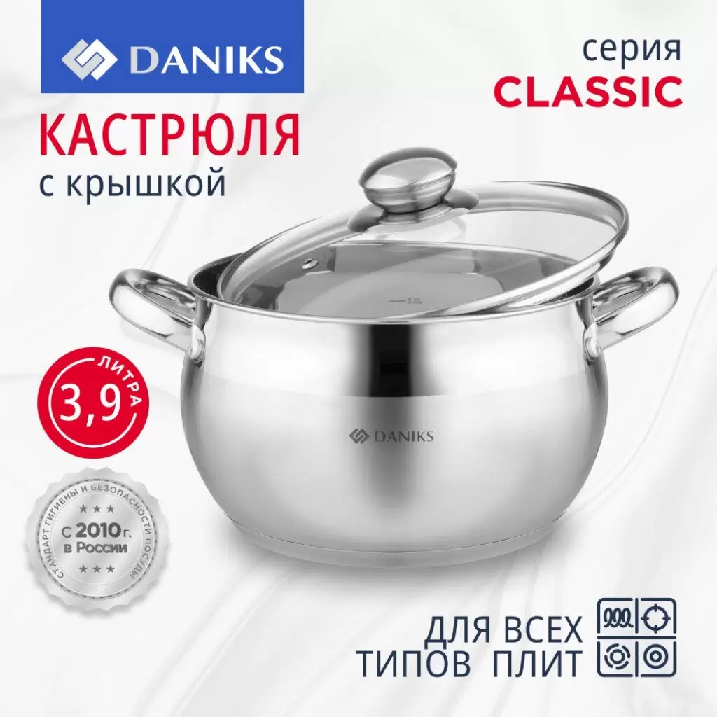 Кастрюля нерж. Daniks Классика 3.9л SD-20 204073