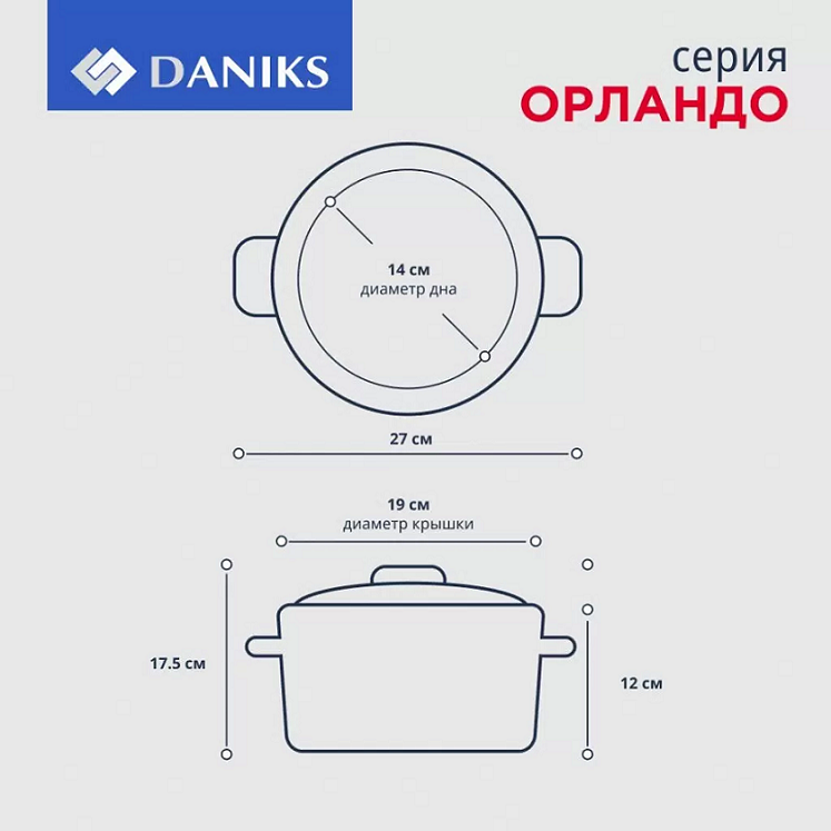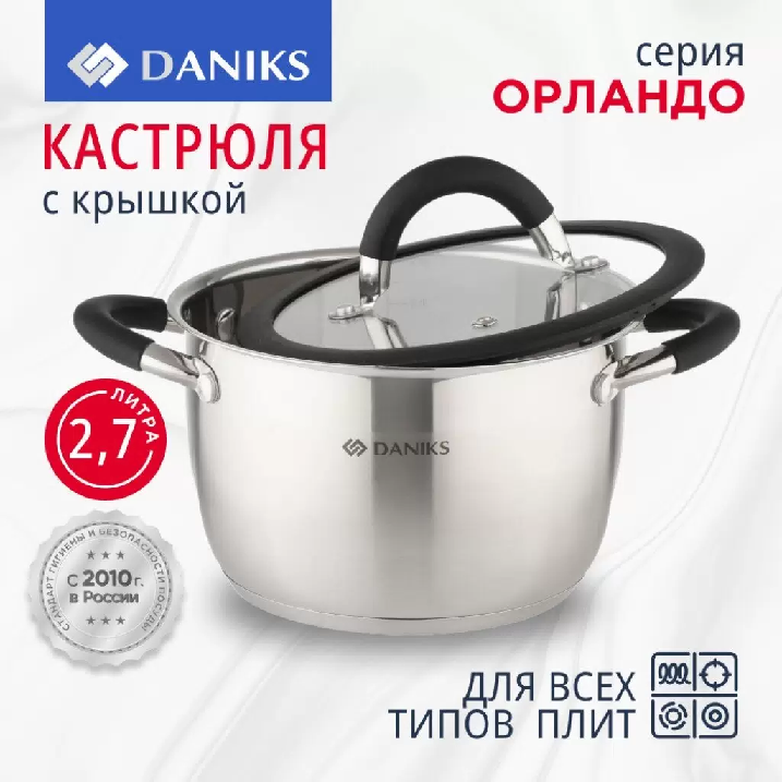 Кастрюля нерж. Daniks Орландо 2.7л серебр. GS-01435-18CA