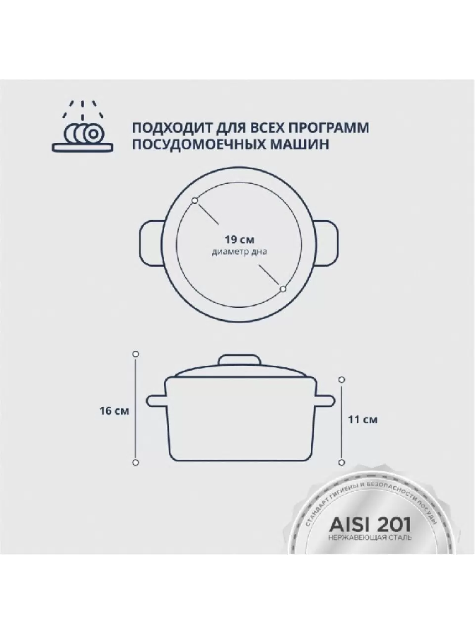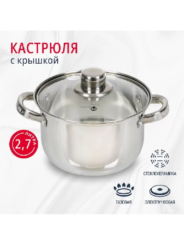 Кастрюля из нержавеющей стали 2,7 л с мерной шкалой и стеклянной крышкой — оптимальный выбор для дома и дачи: сохраняйте вкус блюд, экономьте время и силы.