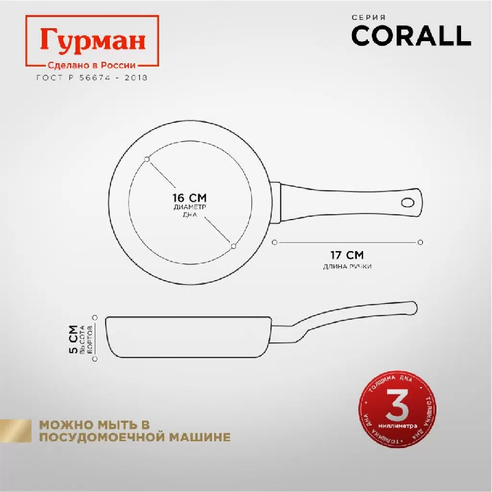 Заявленным качествам отвечает сковорода Гурман. Главной отличительной особенностью серии является использование экологически чистого антипригарного покрытия, полностью безопасного для здоровья.