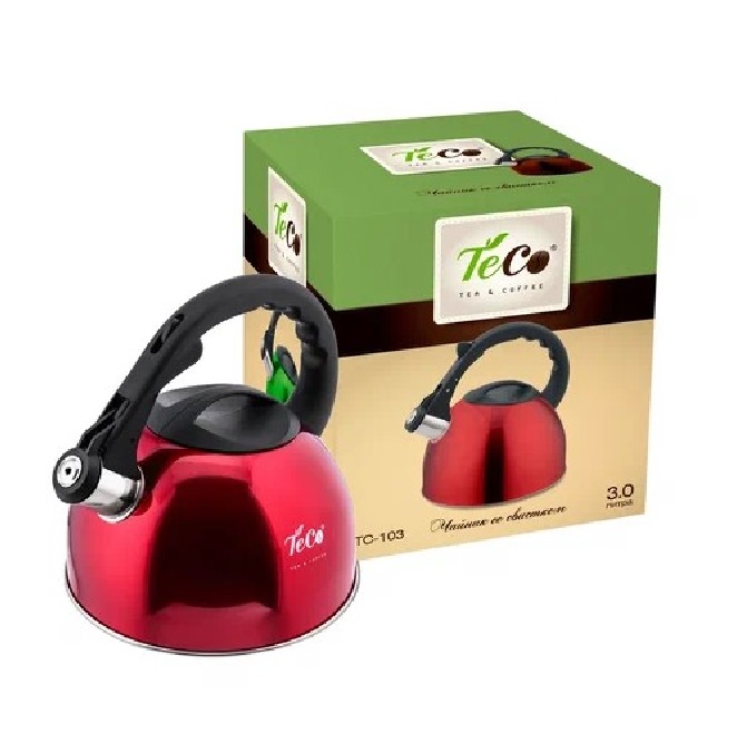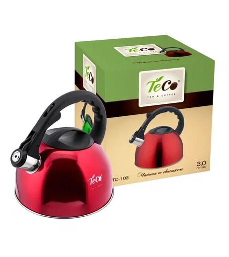 Чайник нерж. Teco 3,0л со свистком красный TC-103-R