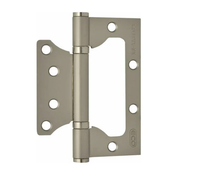 Петля без врезки. Накладная, универсальная, с 2 подшипниками. Размер - 100х75х2,5мм. Материал - сталь. Покрытие - гальваника. Комплектуются шурупами.