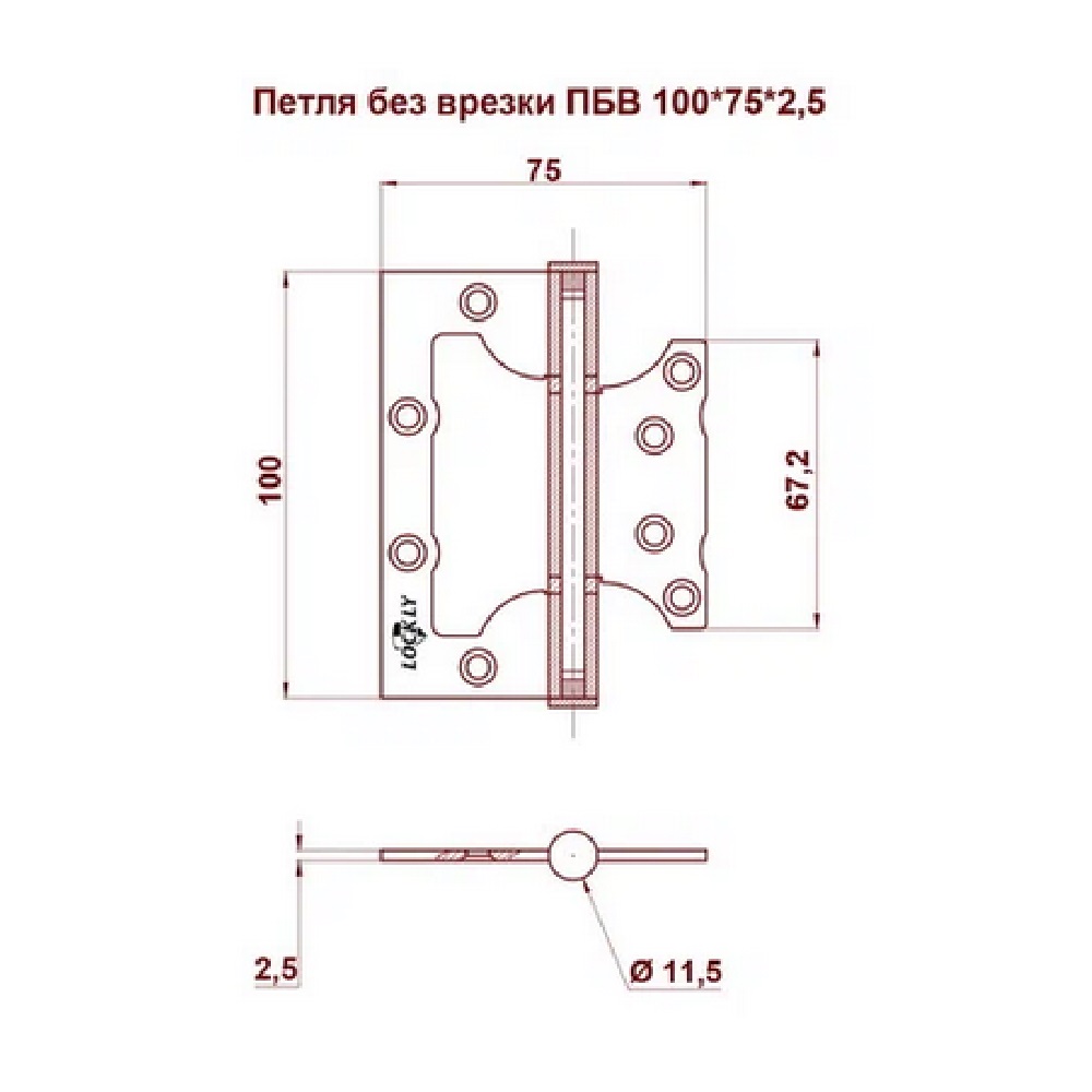 Петля накладная (бабочка) "LOCKLY" 100*75*2,5 черный матовый (2шт)