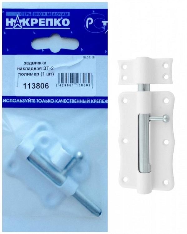 Задвижка накладная фигурная НАКРЕПКО 50мм ЗТ-2 белая 113806