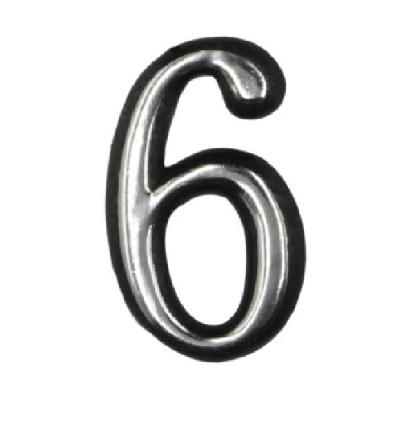 Цифра дверная "6" самоклеющаяся 50мм хром