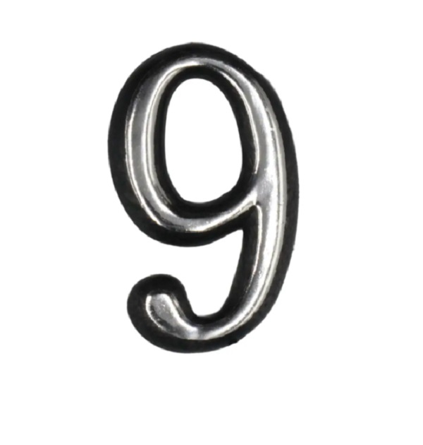 Цифра дверная "9" самоклеющаяся 50мм хром