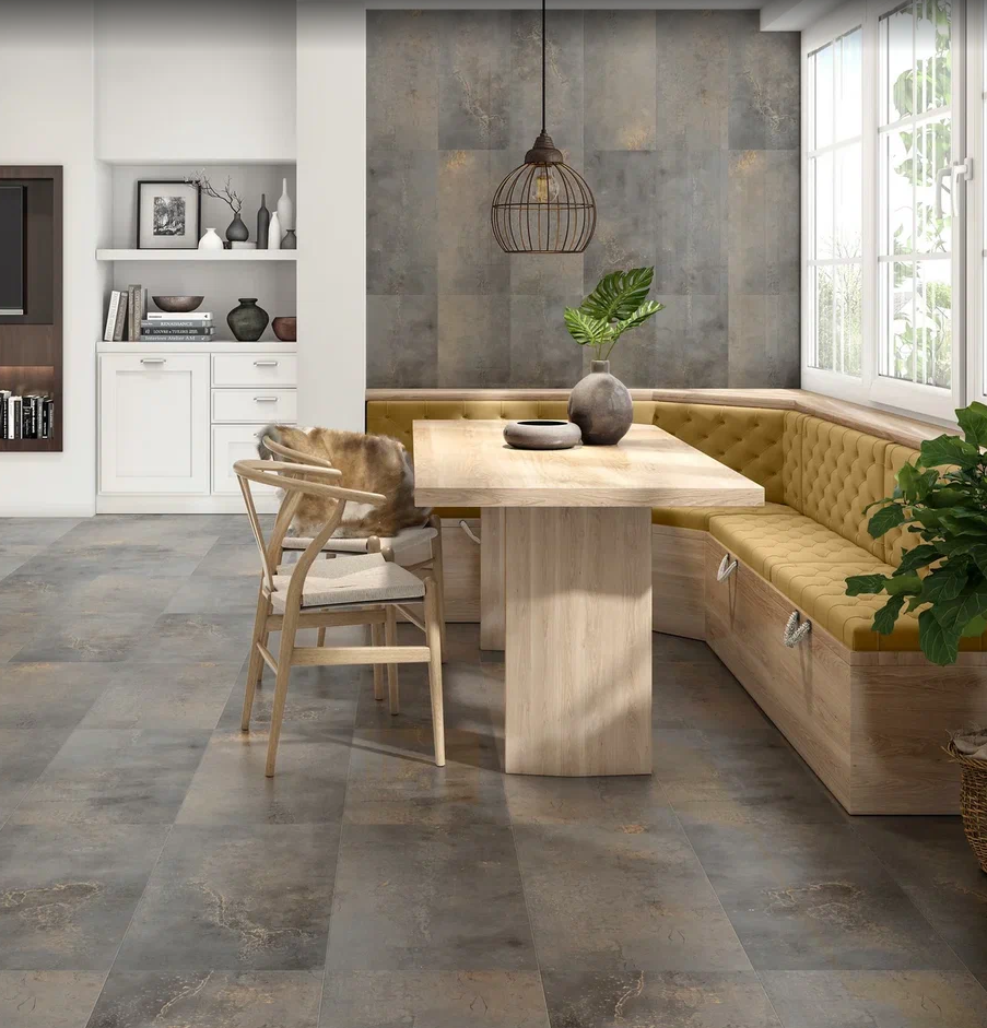 Основа SPC (Stone Polymer Composit) - это соединение камня (известняка) с винилом. Такой композит выдерживает любые большие нагрузки и удары тяжелых предметов; Высокая износостойкость – прочная, устойчива к царапинам и различным загрязнениям. Не боится следов от кресел и каблуков и падения тяжелых предметов; 100% влагостойкая. Не боится сырости, не гниет; Замковая система Click - плотно сцепляет планки между собой, благодаря чему вода не просочится под пол. А так же достаточно сильная, чтобы преодолеть вертикальные нагрузки, возникающие из за неровности основания; Возможно использовать поверх теплых полов, максимальная температура +27°С; Отличное шумопоглощение: тихий и комфортный при ходьбе; Экологичная - абсолютно безопасна для человека; Виниловая плитка Quartz-Step Stone подходит для использования не только в жилых, но и в коммерческих помещениях (образовательные учреждения, офисы, бутики, рестораны, магазины); Укладывается на специализированную подложку под LVT покрытия толщиной 1,5мм.