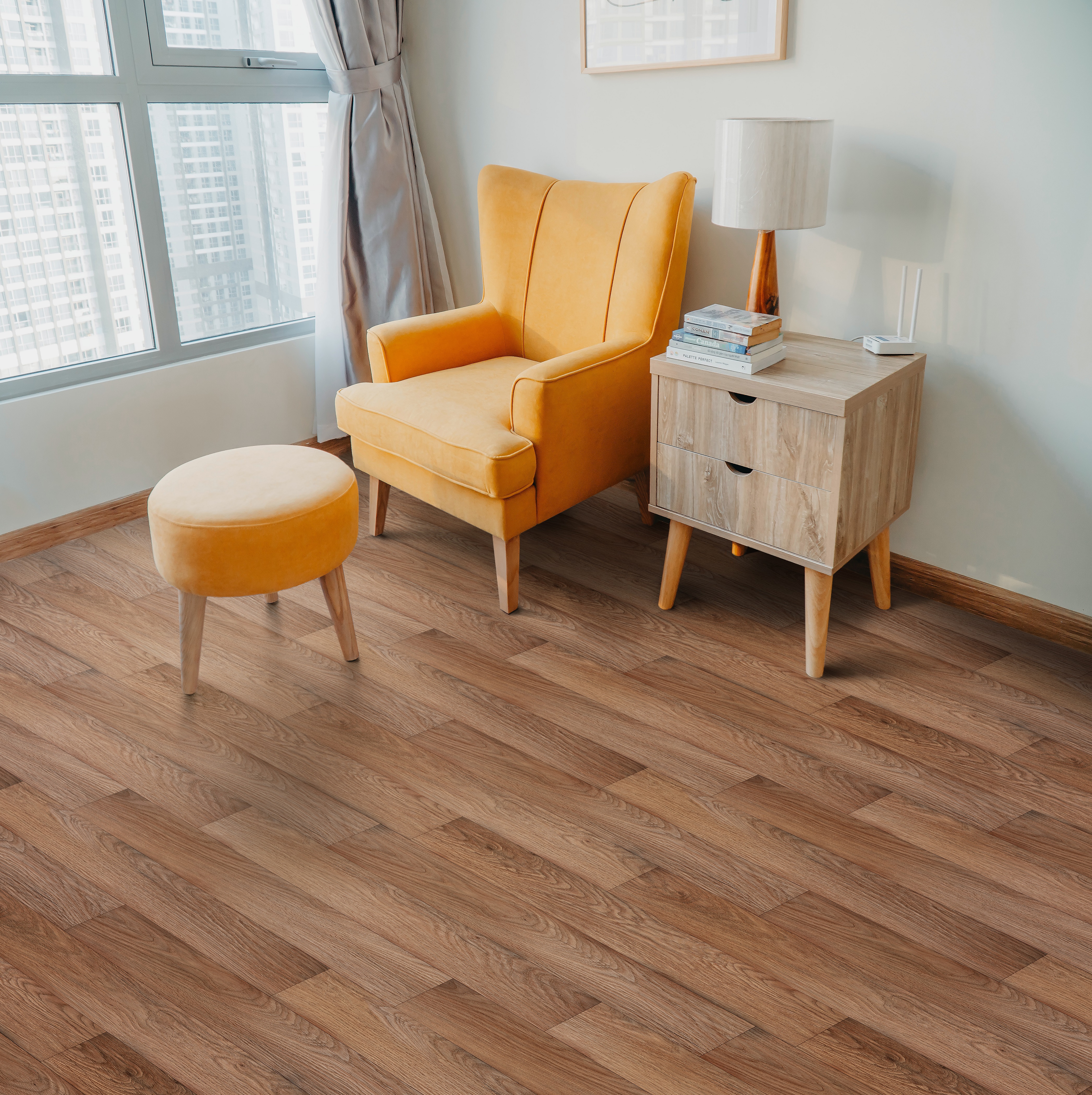 Класс применения в жилых помещениях - 21. Общая толщина - 2,5мм, защитный слой - 0,15мм, вес 1,4 кг/кв.м.