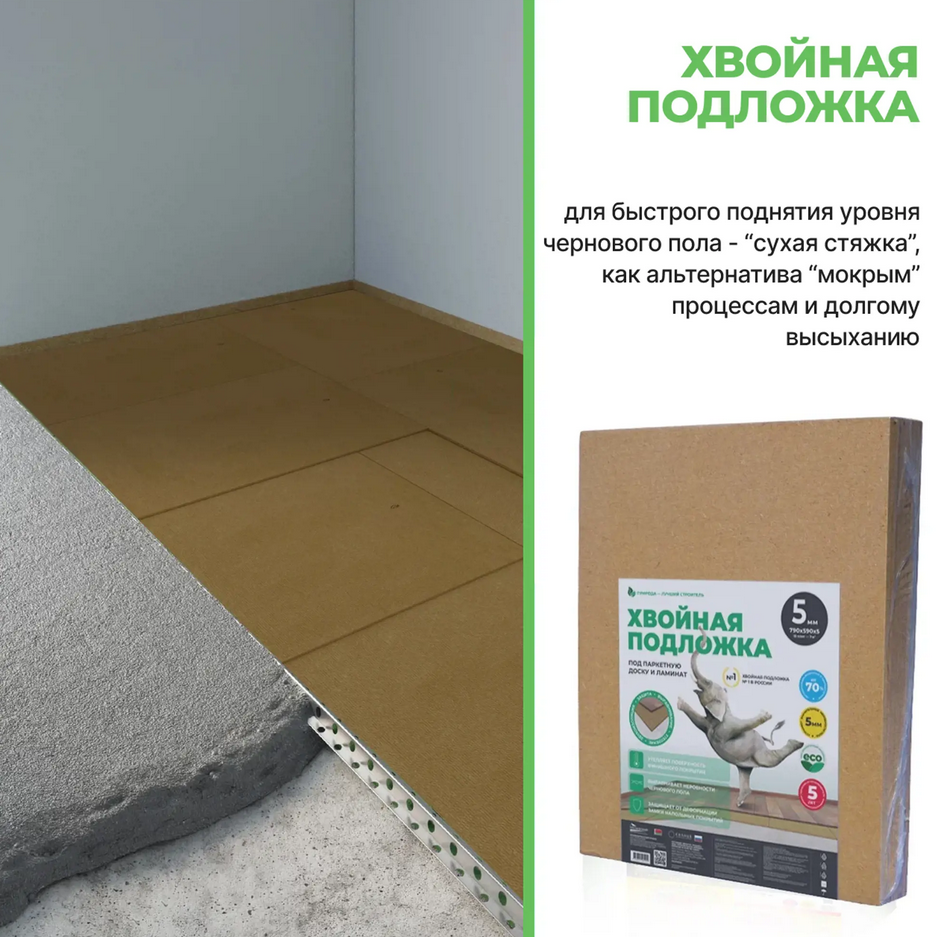 Натуральная подложка Белтермо производится из размолотой хвойной древесины с добавлением смолы.
