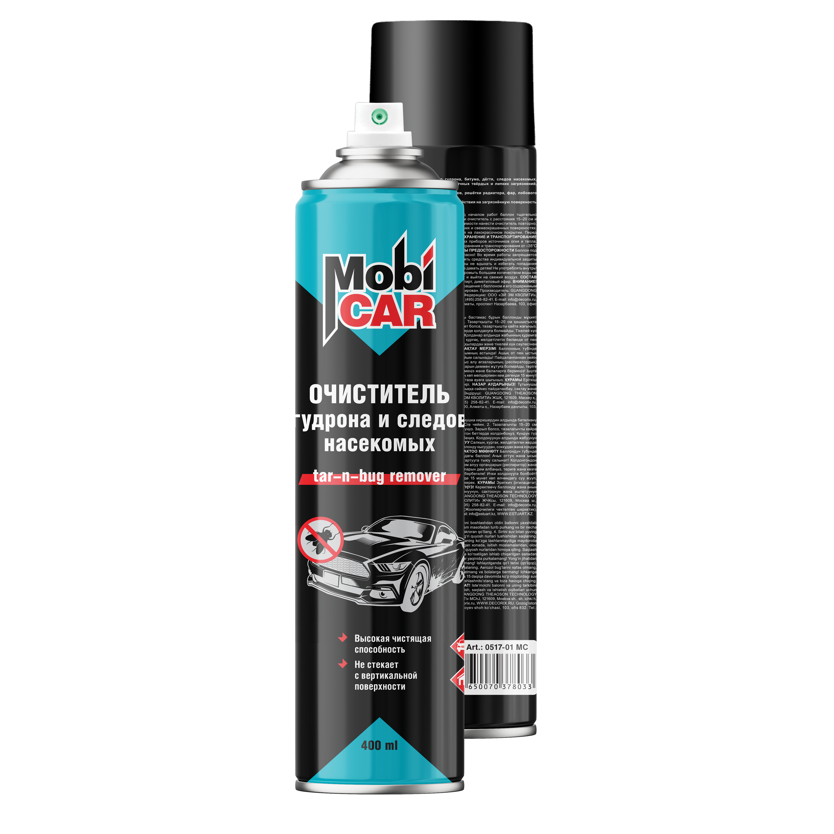 Профессиональный очиститель гудрона и следов насекомых MobiCAR® предназначен для быстрого и качественного удаления дорожного гудрона, битума, дёгтя, следов насекомых, биологических загрязнений, сока растений, масляных пятен, а также различных твёрдых и липких загрязнений, которые не смываются при обычной мойке.