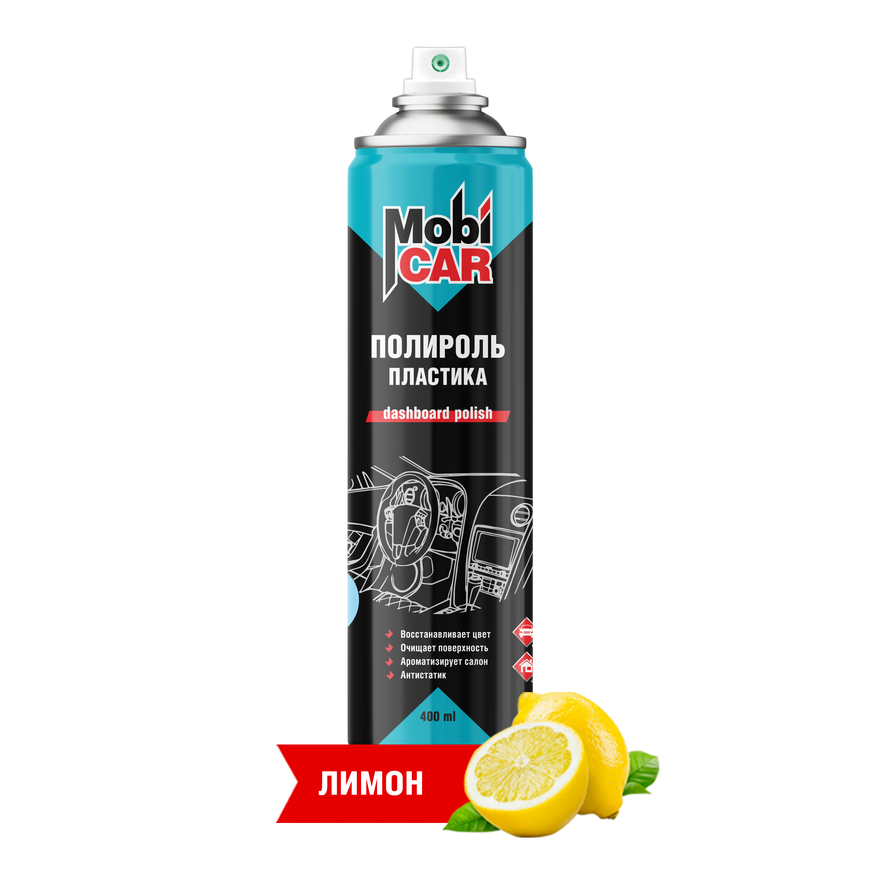 Матовый полироль пластика Mobicar 400 мл 0507-01 MC предназначен для ухода за поверхностями из пластика, винила, кожи и лакированной древесины. Прекрасно очищает и обновляет внешний вид приборной панели, пластиковых и виниловых деталей отделки салона автомобиля. Удаляет пыль и грязь, жирный блеск и пятна от пальцев. Обладает антистатическим эффектом и придаёт эффект новизны. Создаёт защитную плёнку, обладает водоотталкивающими свойствами, предотвращает выцветание поверхности. Обладает приятным ароматом, нейтрализующим неприятные запахи, в т. ч. и запах табака. Подходит для бытового применения.