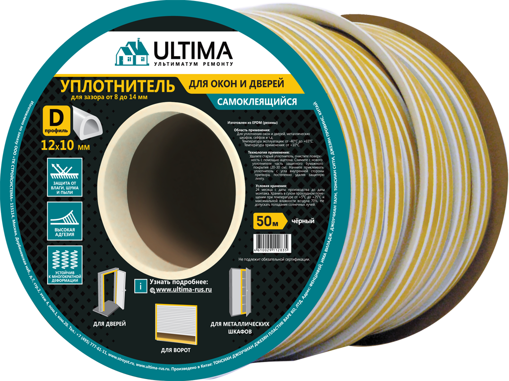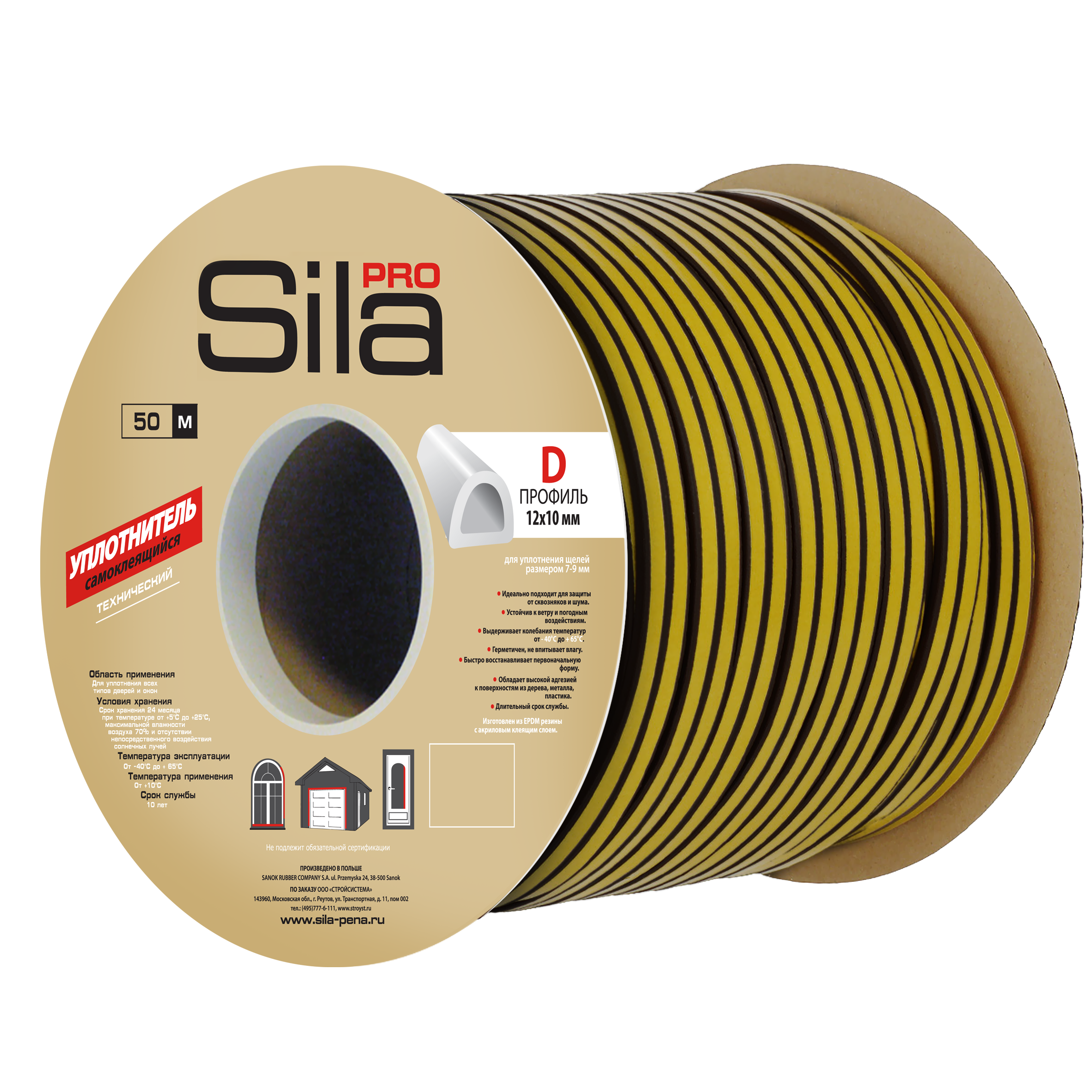 Уплотнитель самоклеящийся из резины EPDM с акриловым клеящим слоем Sila pro D50, 12х10 мм, черный. Применяется для уплотнения всех типов оконных рам и дверных блоков. Защищает от пыли и шума. Обладает высокой звуко- и теплоизоляцией. Устойчив к агрессивным воздействиям окружающей среды и УФ-излучению. Полностью восстанавливается после сжатия. При удалении не повреждает поверхность. Для щелей 7-9мм.