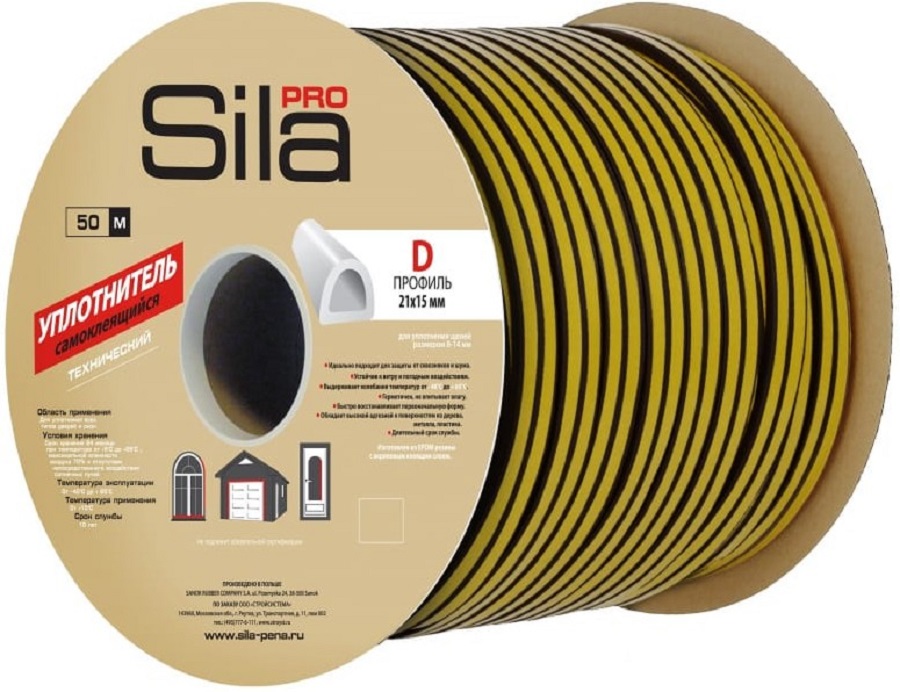 Уплотнитель самоклеящийся из резины EPDM с акриловым клеящим слоем Sila pro D50, 21х15 мм, черный. Применяется для уплотнения всех типов оконных рам и дверных блоков. Защищает от пыли и шума. Обладает высокой звуко- и теплоизоляцией. Устойчив к агрессивным воздействиям окружающей среды и УФ-излучению. Полностью восстанавливается после сжатия. При удалении не повреждает поверхность. Для щелей 8-14мм.