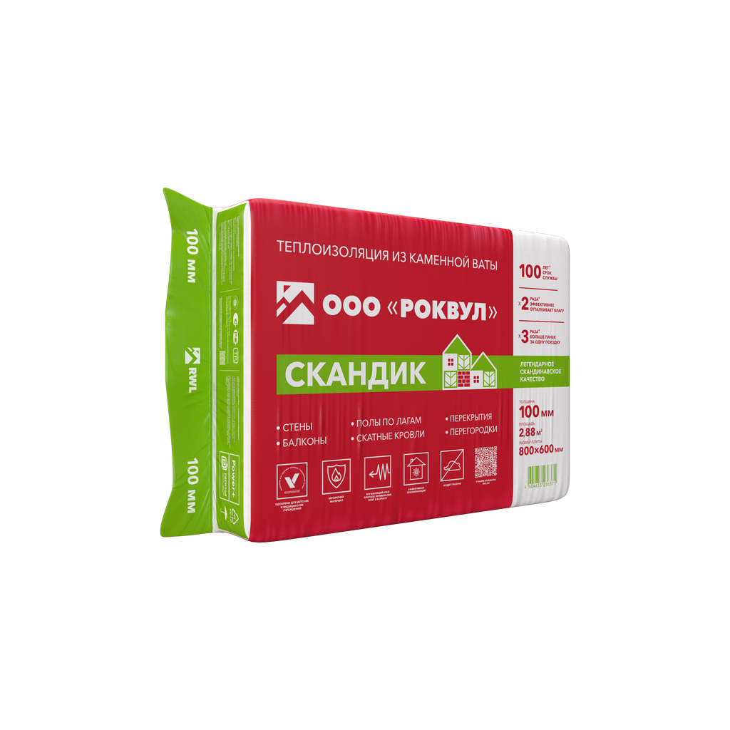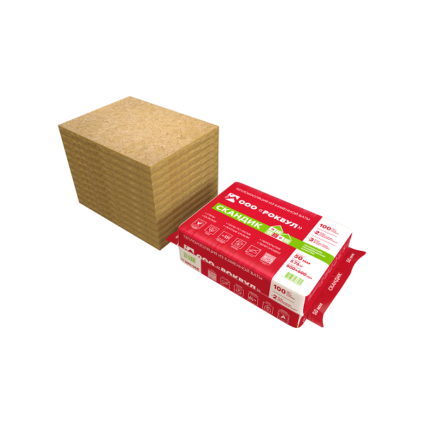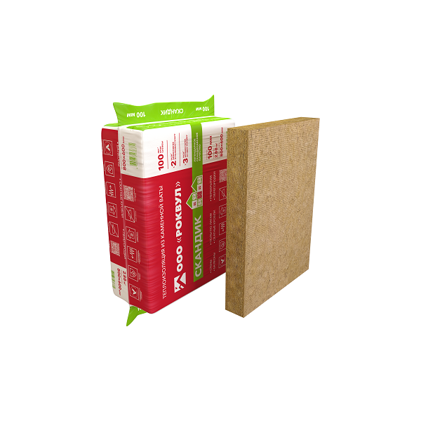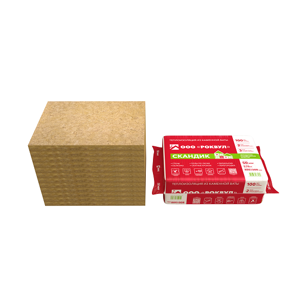 Утеплитель "Роквул" Лайт Баттс Скандик 800х600х100мм / 2,88м2 - 0,288м3 / 6 плит