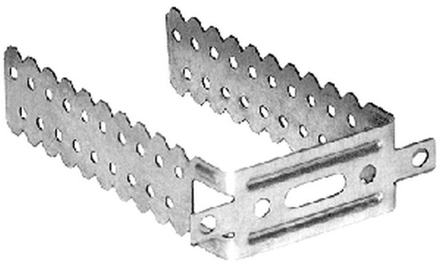 Этот элемент представляет собой металлическую пластину с надрезами и отверстиями, которую после закрепления к несущему элементу конструкции (стена или потолок) анкером или дюбелем изгибают буквой П. В эту проушину на необходимом расстоянии и фиксируется профиль ПП60х27 при помощи саморезов (металл-металл), излишки загибаются во внутрь.