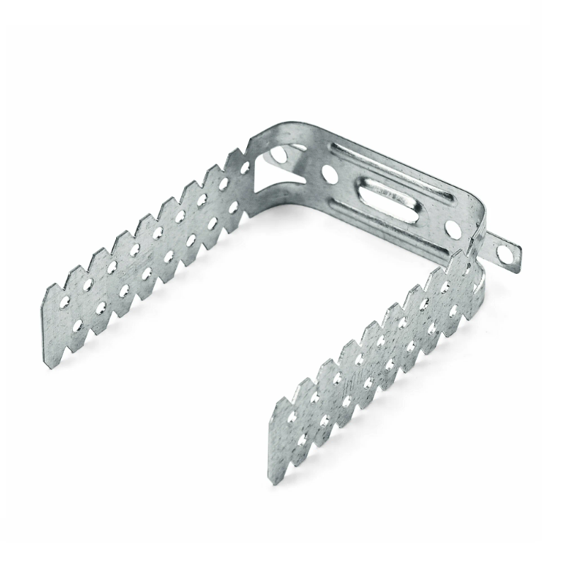 Этот элемент представляет собой металлическую пластину с надрезами и отверстиями, которую после закрепления к несущему элементу конструкции (стена или потолок) анкером или дюбелем изгибают буквой П. В эту проушину на необходимом расстоянии и фиксируется профиль ПП60х27 при помощи саморезов (металл-металл), излишки загибаются во внутрь.