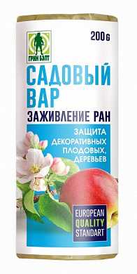 Садовый вар – это средство для обработки срезов, трещин и ран на коре дерева. Его применяют при плановой и срочной обрезке деревьев для дезинфекции «раны», защиты ее от проникновения микробов и вредителей, к тому же средство не позволяет растению терять сок.