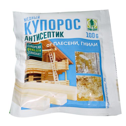 Медный купорос применяется для профилактической обработки и борьбы с плесенью, гнилями и вредителями древесины. Водный раствор купороса защищает древесину от возгорания и гниения при ремонтно-строительных работах.