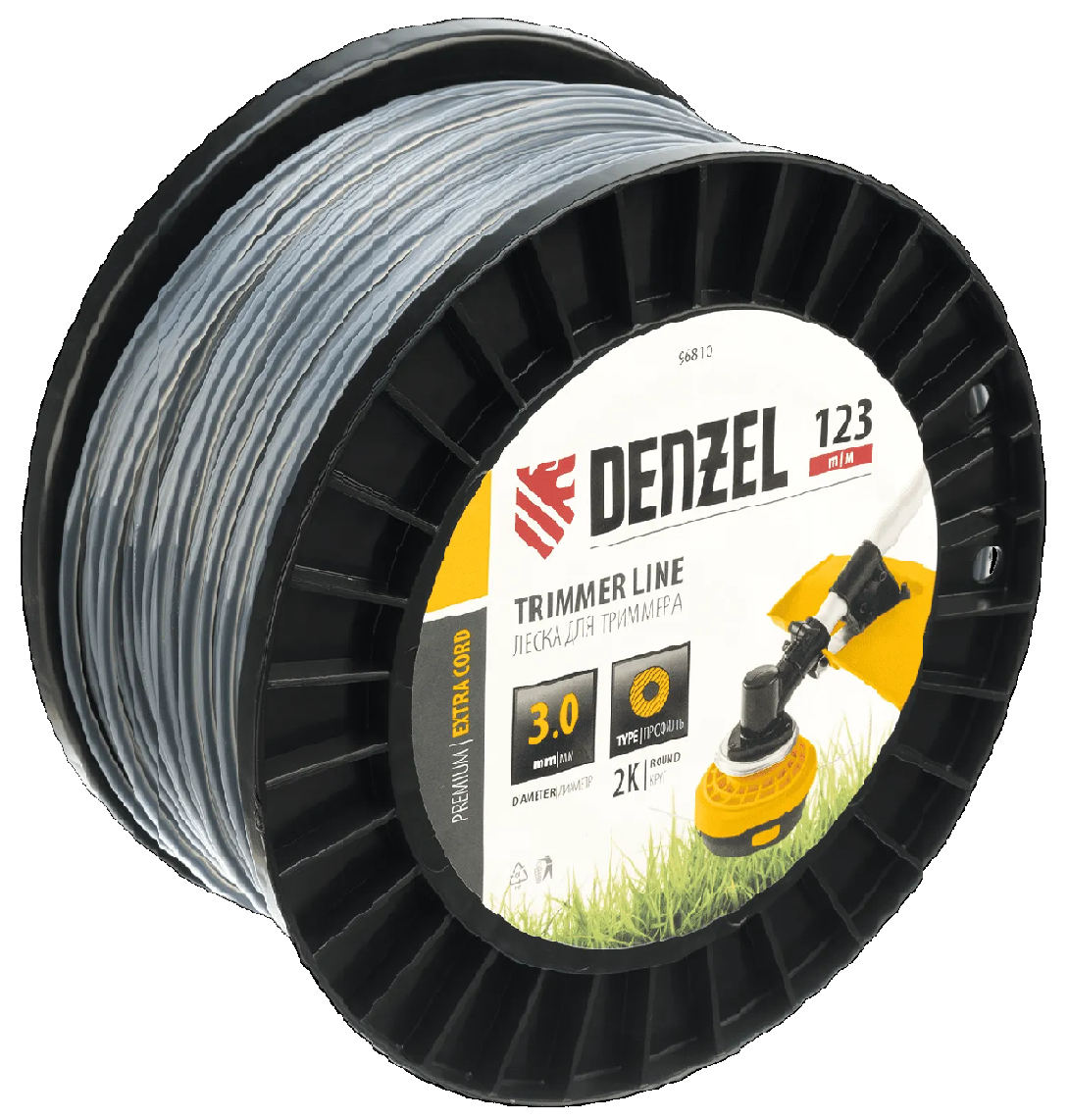 Двухкомпонентная леска для триммера Denzel EXTRA CORD 96810 размером 3,0 мм х 123 м, с круглым сечением, на DIN-катушке, предназначена для работы с бензотриммерами с объемом двигателя 25-52 см3. Используется для скашивания густой травы и растений с толстыми стеблями. Будет полезна для ухода за дачным участком или придомовой территорией.