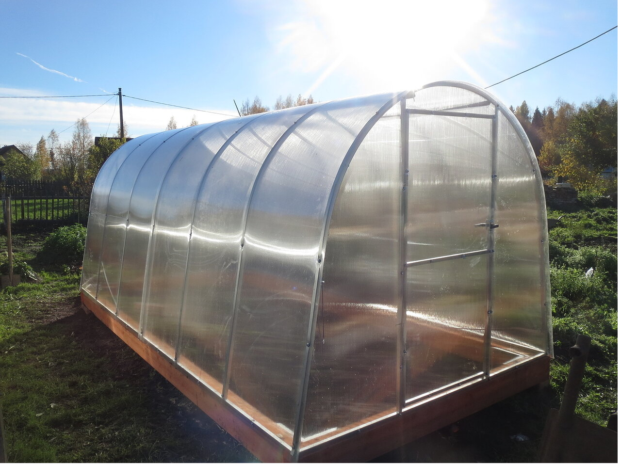 Оцинкованная труба 20х20мм, расстояние между дугами – 65см, высота 1,7м, ширина 2м. длина: 4м, 1дверь/1форточка