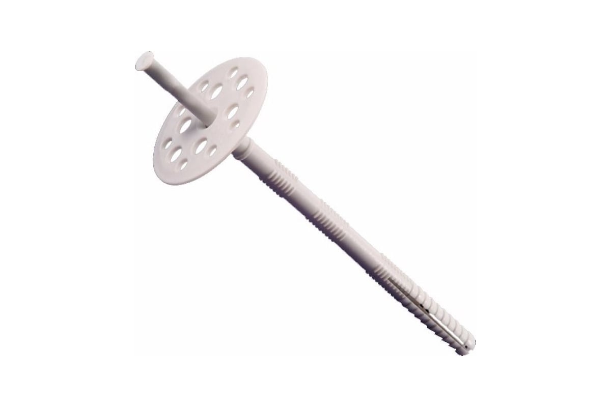 Дюбель для изоляции с пластмассовым гвоздем -это крепление термоизоляционного материала, такого как:стекловаты, пенопласта, полиуретана и как правило, наружным стенам зданий (кирпичу, бетонным плитам, пенобетону). Удержание теплоизоляционного материала происходит за счёт широкой шляпки дюбеля для теплоизоляции