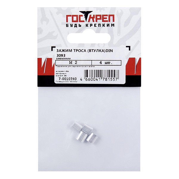 Зажим троса алюминиевый 2мм DIN3093 (4шт) пакет ГОСКРЕП