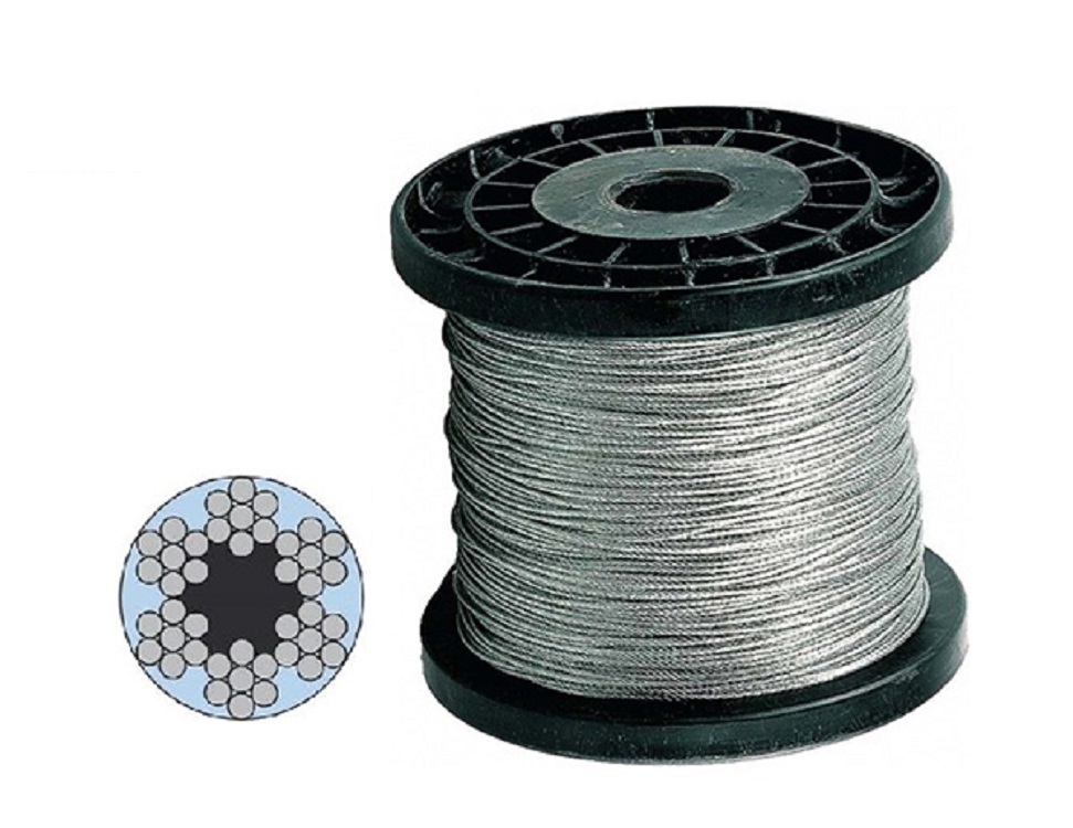 Материал для изготовления витого троса средней мягкости – оцинкованная проволока. Ее в намотанном на катушку виде используют в станке для навивки троса. Это изделие производится методом кручения по схеме 6*7, когда 6-ть прядей обвиты вокруг органического сердечника. Такая деталь это опора прядей, снижающая действующие радиальные нагрузки. Прядь, в свою очередь, состоит из шести проволок, навиваемых на седьмой.