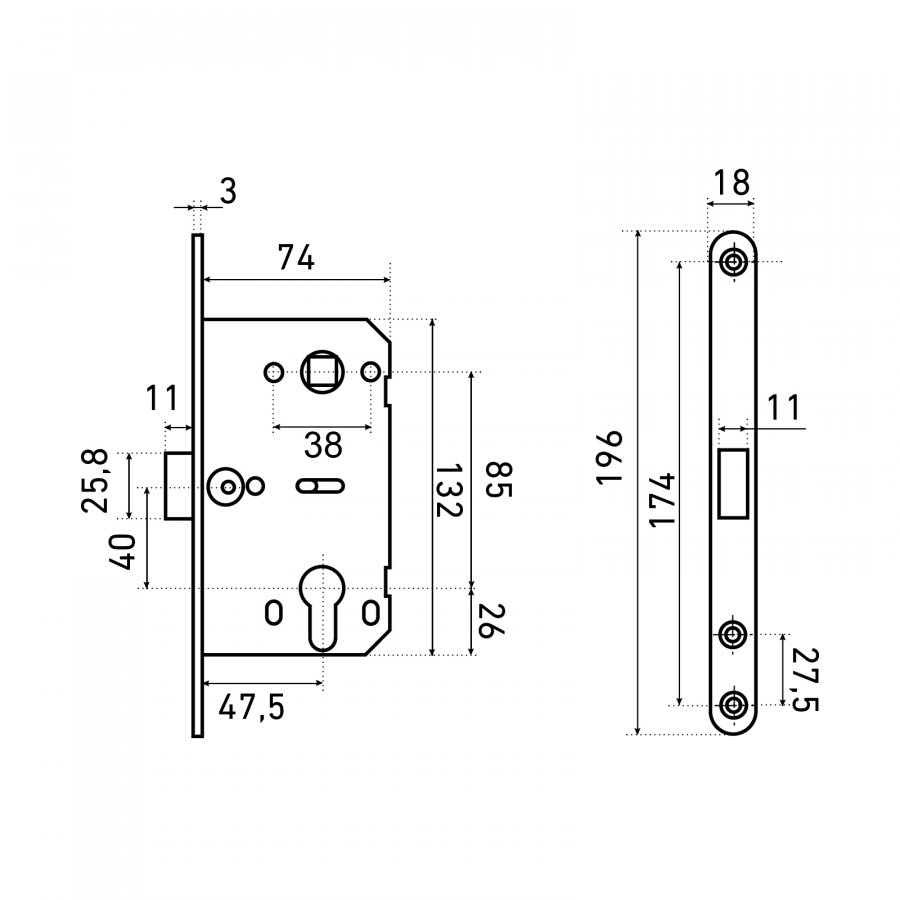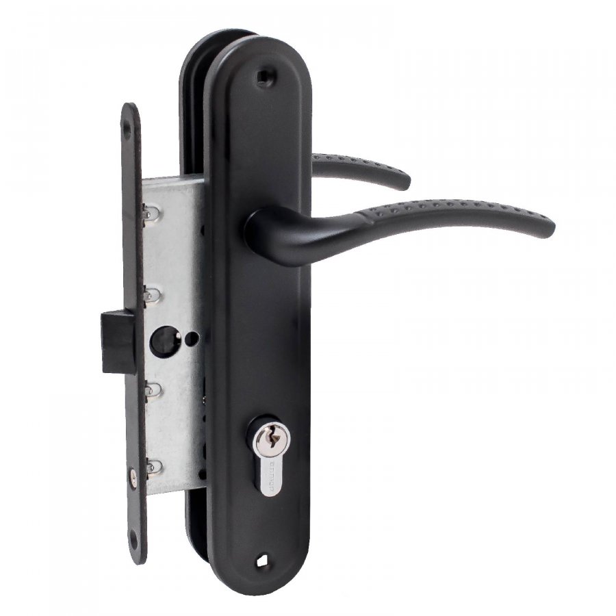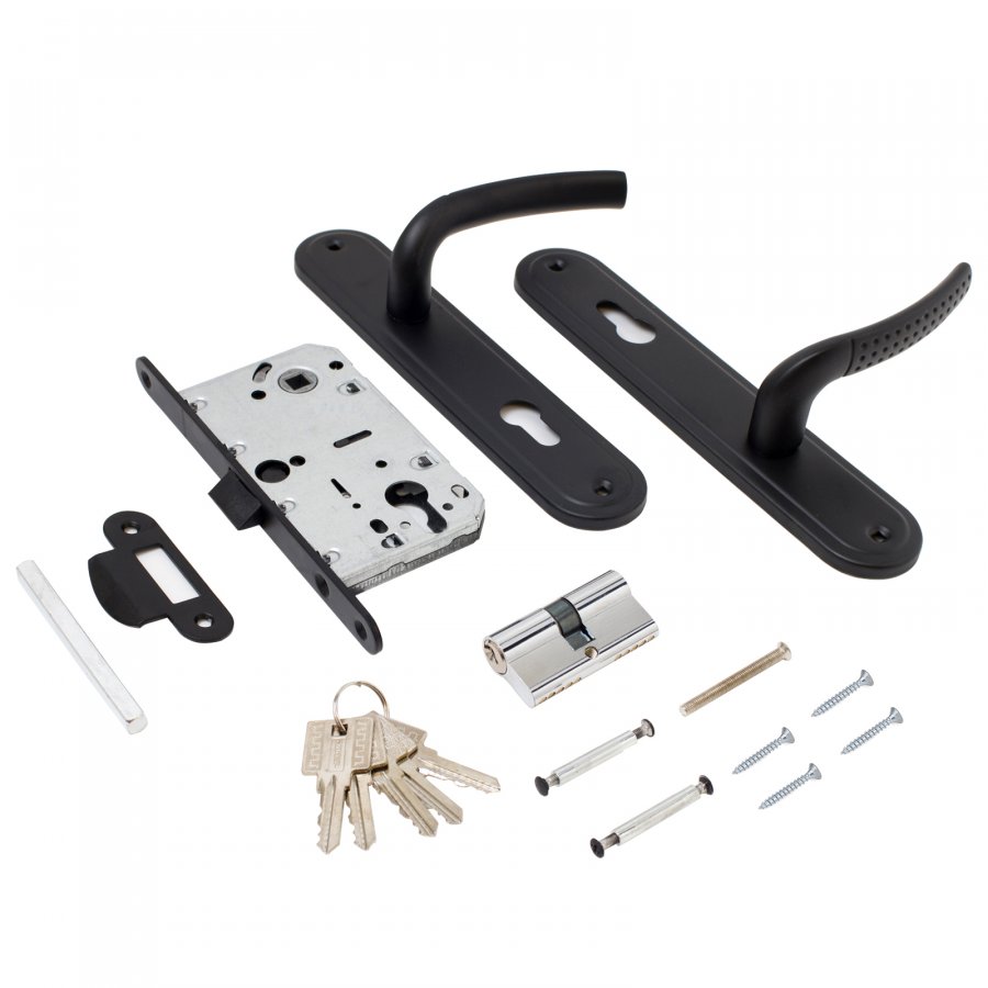 Замок врезной АЛЛЮР ЗВ 7-132/85 BL в сборе матовый черный (5 ключей)