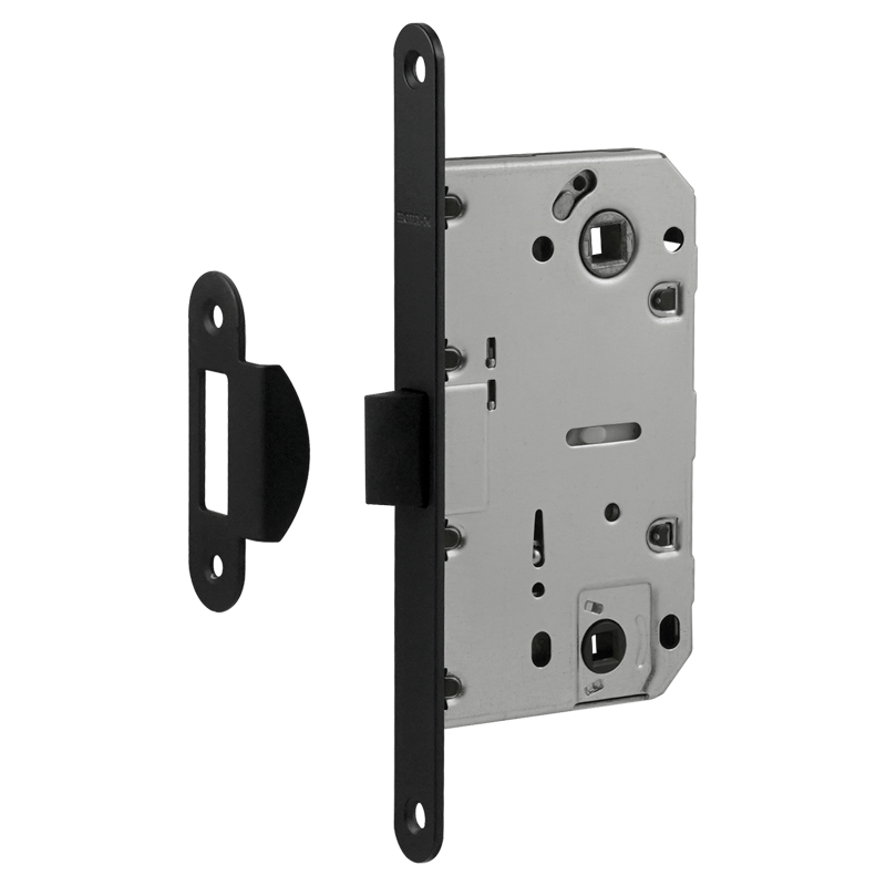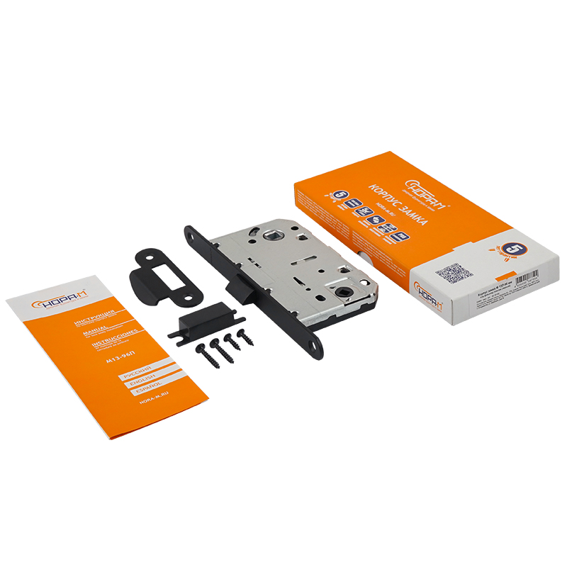 Корпус замка предназначен для установки на межкомнатные деревянные двери, комплектуется с накладкой под фиксатор. Чаще всего механизм врезного замка с фиксатором устанавливается на сантехнических дверях (в туалете, ванной, душевой). Межосевое расстояние – 96 мм. Защитный корпус изготовлен из стали, имеет порошковое покрытие, обеспечивающий металлу дополнительную защиту от коррозии.