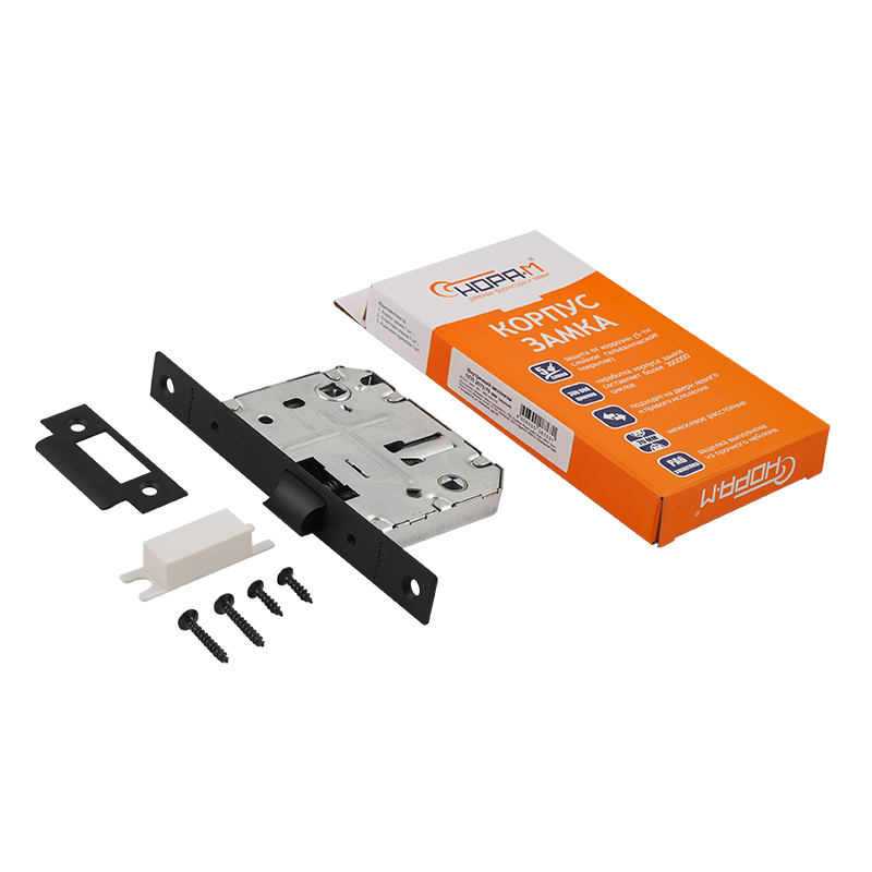 Комплектуется с дверной ручкой и накладкой под фиксатор.