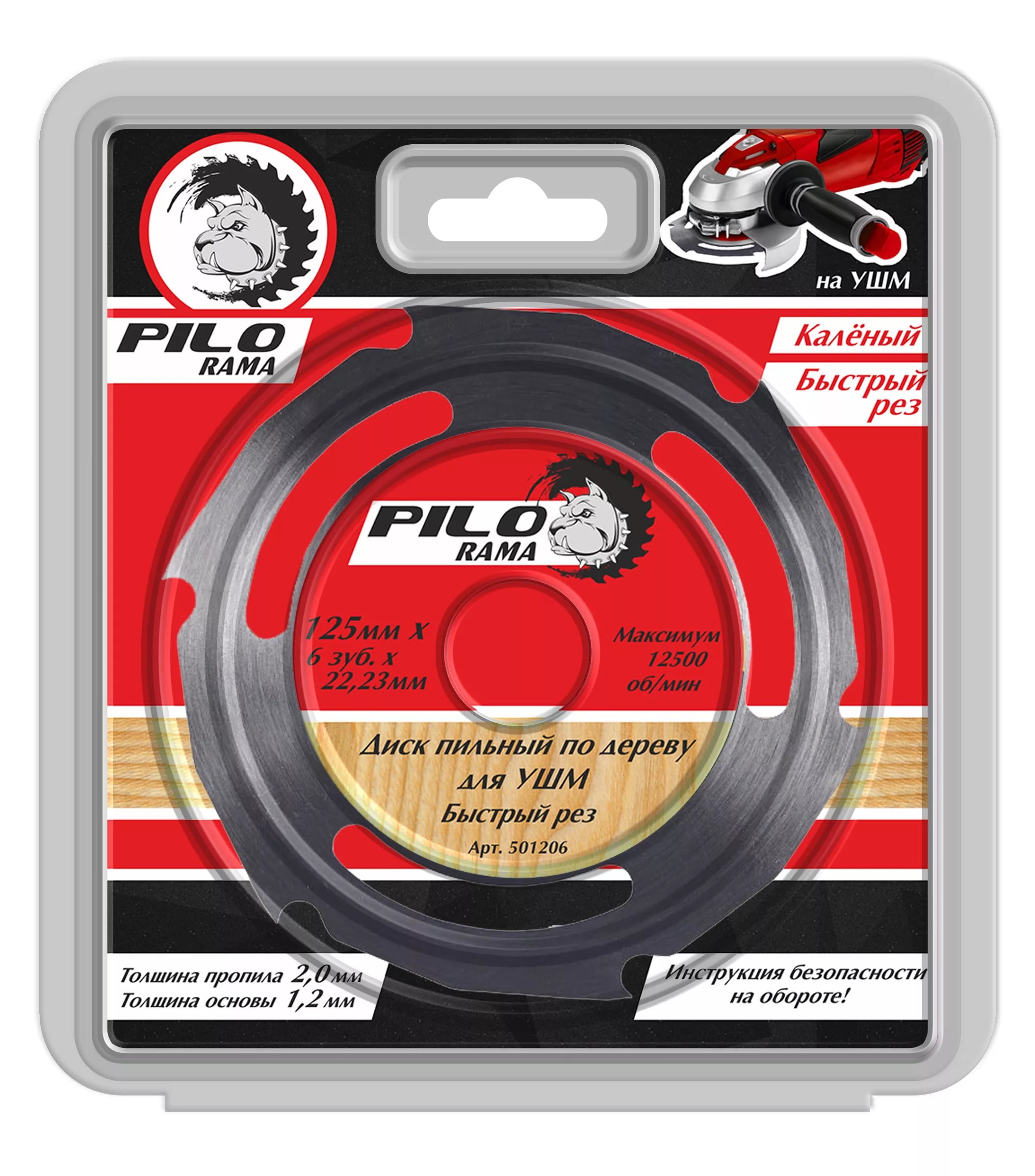 Диск пильный по дереву для УШМ 125х22,2мм 6 зубов PILORAMA 501206