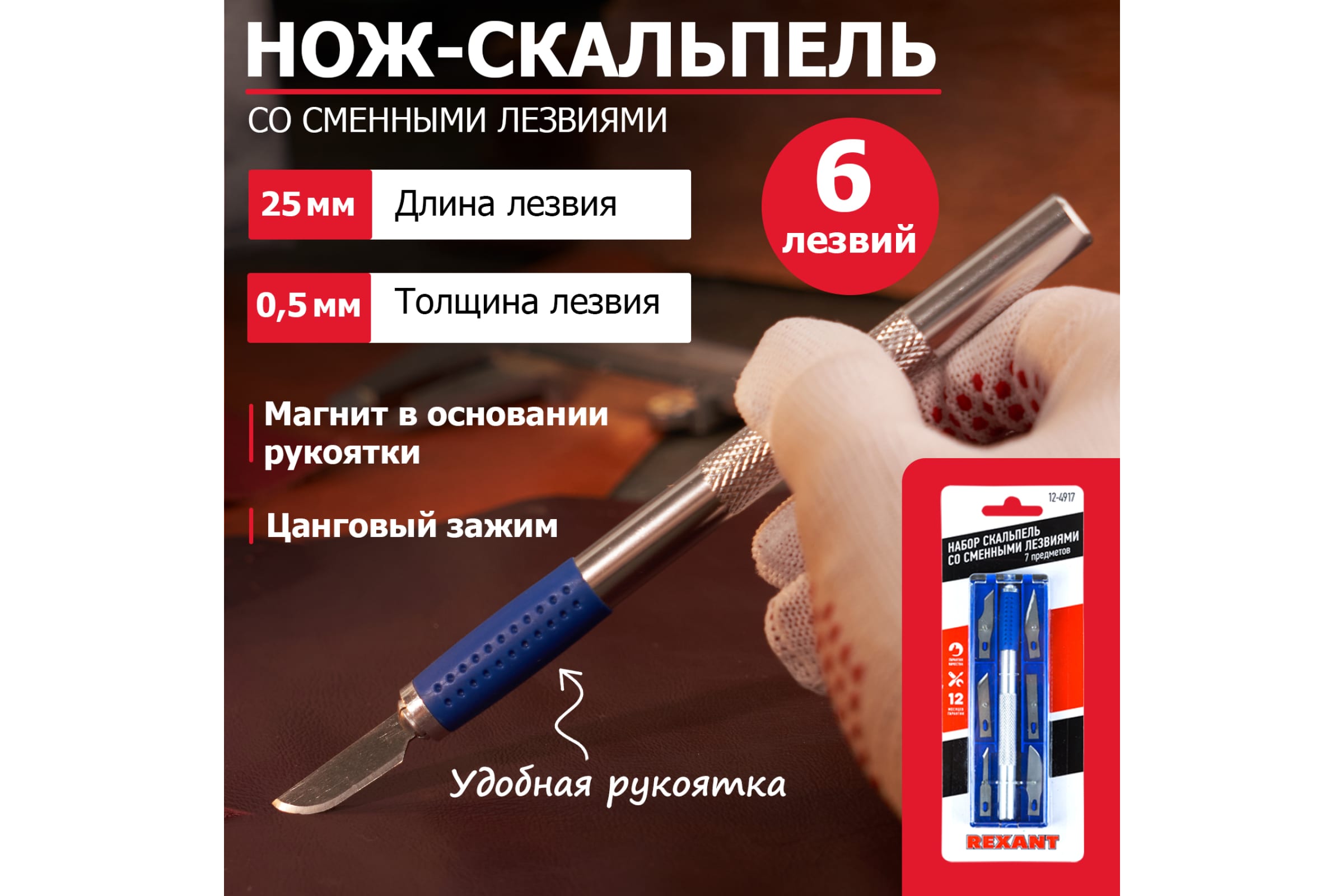 Набор скальпель со сменными лезвиями 7 предметов Rexant 12-4917 /499