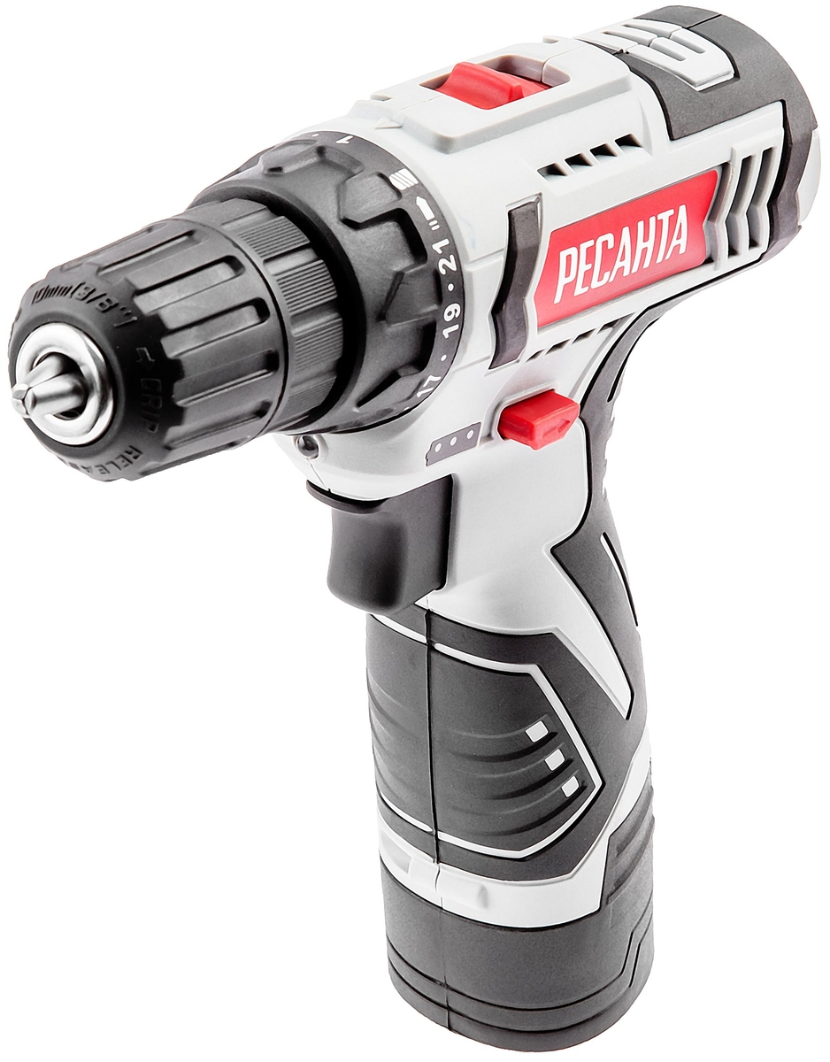 Дрель-шуруповерт аккумуляторная Ресанта ДА-12-2ЛК - предназначена для закручивания и откручивания шурупов, саморезов, винтов и других видов крепежных изделий, а также сверления отверстий в различных конструкционных материалах. Инструмент состоит из пластмассового корпуса с расположенным в нем двигателем постоянного тока с планетарным редуктором, с помощью которого регулируется максимальное усилие сверления (закручивания) - крутящий момент. Питание электродвигателя происходит от съемной литий-ионной аккумуляторной батареи, которая поставляется в комплекте. Преимущества данных батареи - они не имеют «эффекта памяти», обладают минимальной способностью саморазрядки и имеют троекратное превосходство перед никель-кадмиевыми аккумуляторами по количеству циклов зарядки-разрядки.