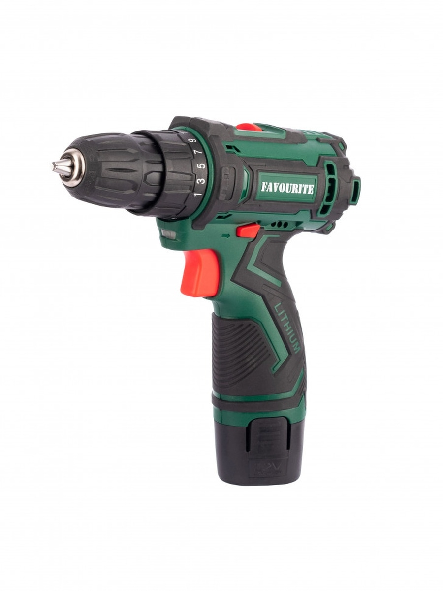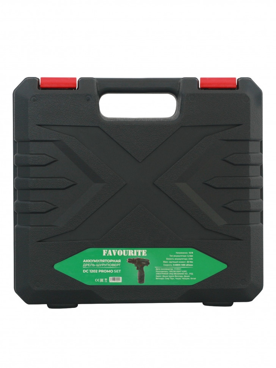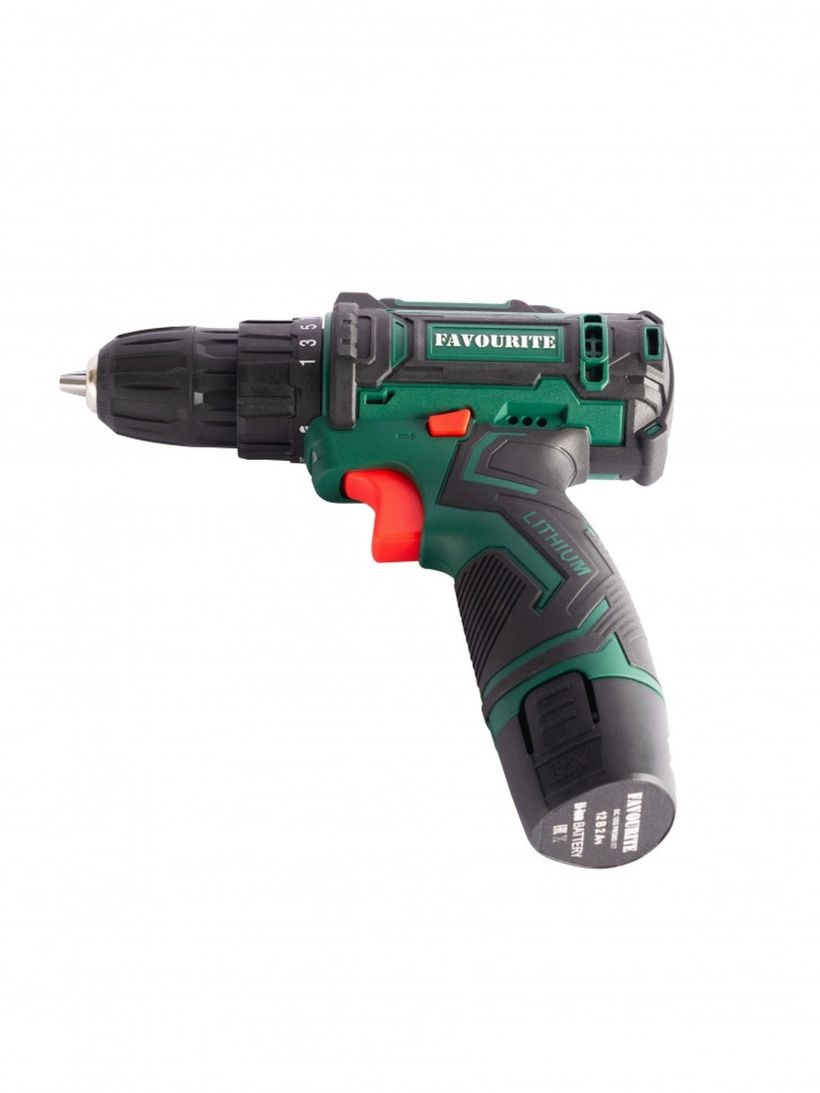 Дрель-шуруповерт аккумуляторная 12В, 25Hm, 2х2,0Ач FAVOURITE DC 1202 PROMO SET с набором оснастки