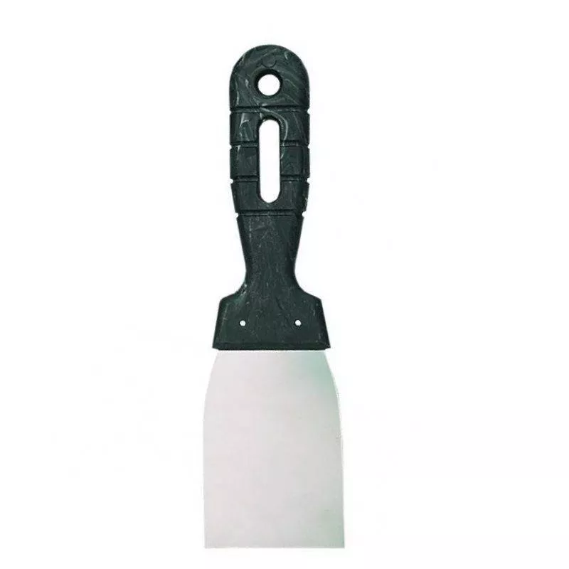 Профилированное полотно шпателя изготовлено из высокоуглеродистой нержавеющей стали, прошедшей специальную термическую обработку для придания ей свойств «памяти» (при изгибе лезвие принимает исходное положение).