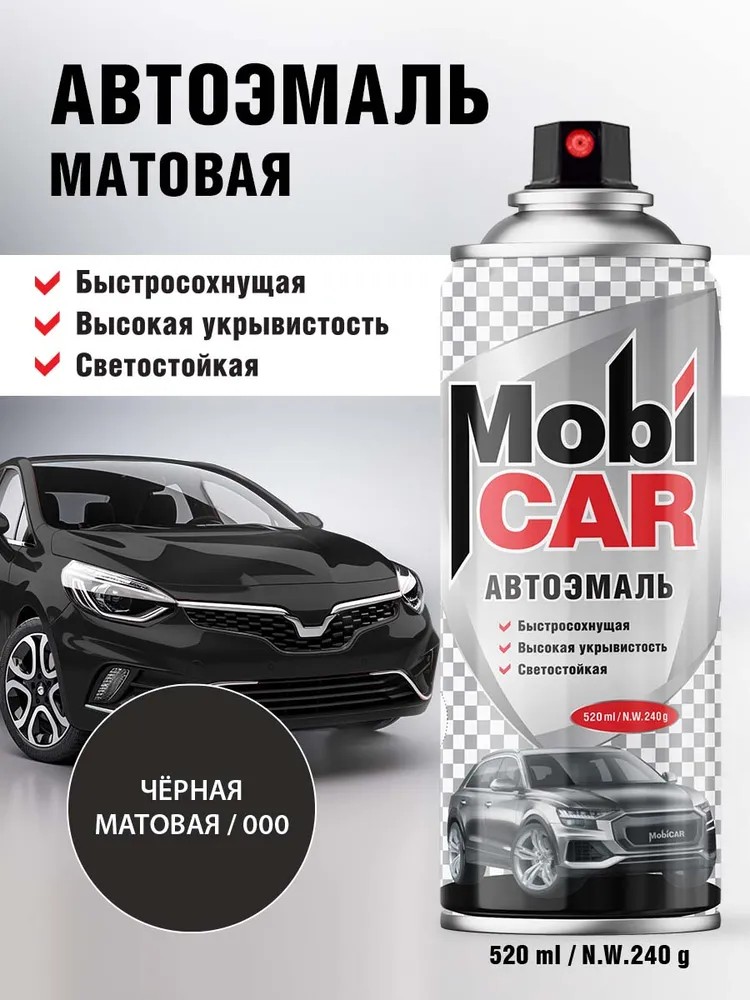 Аэрозольная автоэмаль MobiCar 000 черная мат 520мл