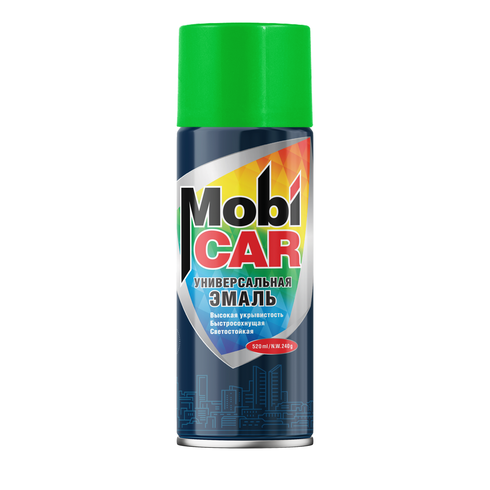 Универсальная эмаль Mobicar 520 мл RAL 6029 зеленый глянцевый 0505-6029 МС предназначена для нанесения базового покрытия при проведении ремонтного окрашивания кузова и деталей автомобиля с последующим нанесением автомобильного лака.