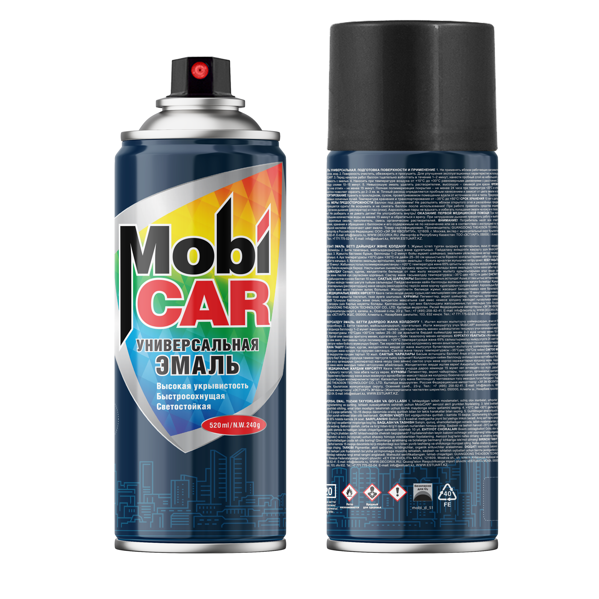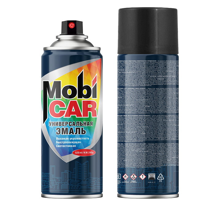 Универсальная эмаль Mobicar 520 мл RAL 9004 сигнальный черный матовый 0505-9004 МС предназначена для нанесения базового покрытия при проведении ремонтного окрашивания кузова и деталей автомобиля с последующим нанесением автомобильного лака.