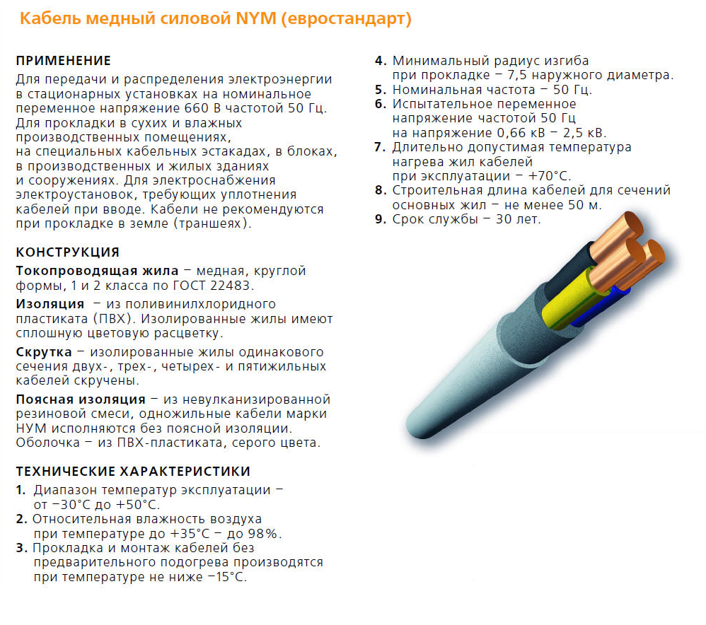 КАБЕЛЬ СИЛОВОЙ С МЕД.ЖИЛОЙ NYM 3х2.5 ГОСТ