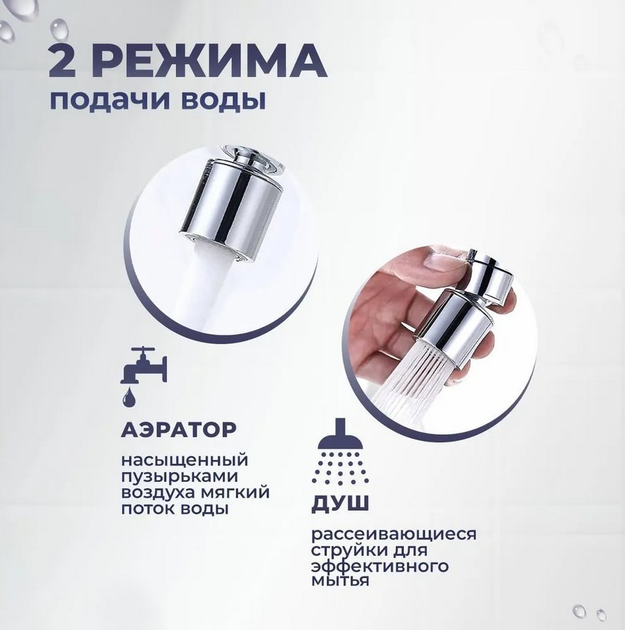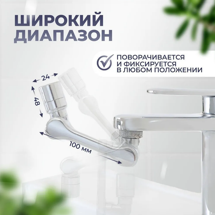 Насадка на кран поворотная 360 - это удивительно удобное и практичное оборудование, которое позволяет сэкономить расход воды вдвое! Поможет значительно расширить функциональность вашего смесителя на кухне или в ванной комнате.