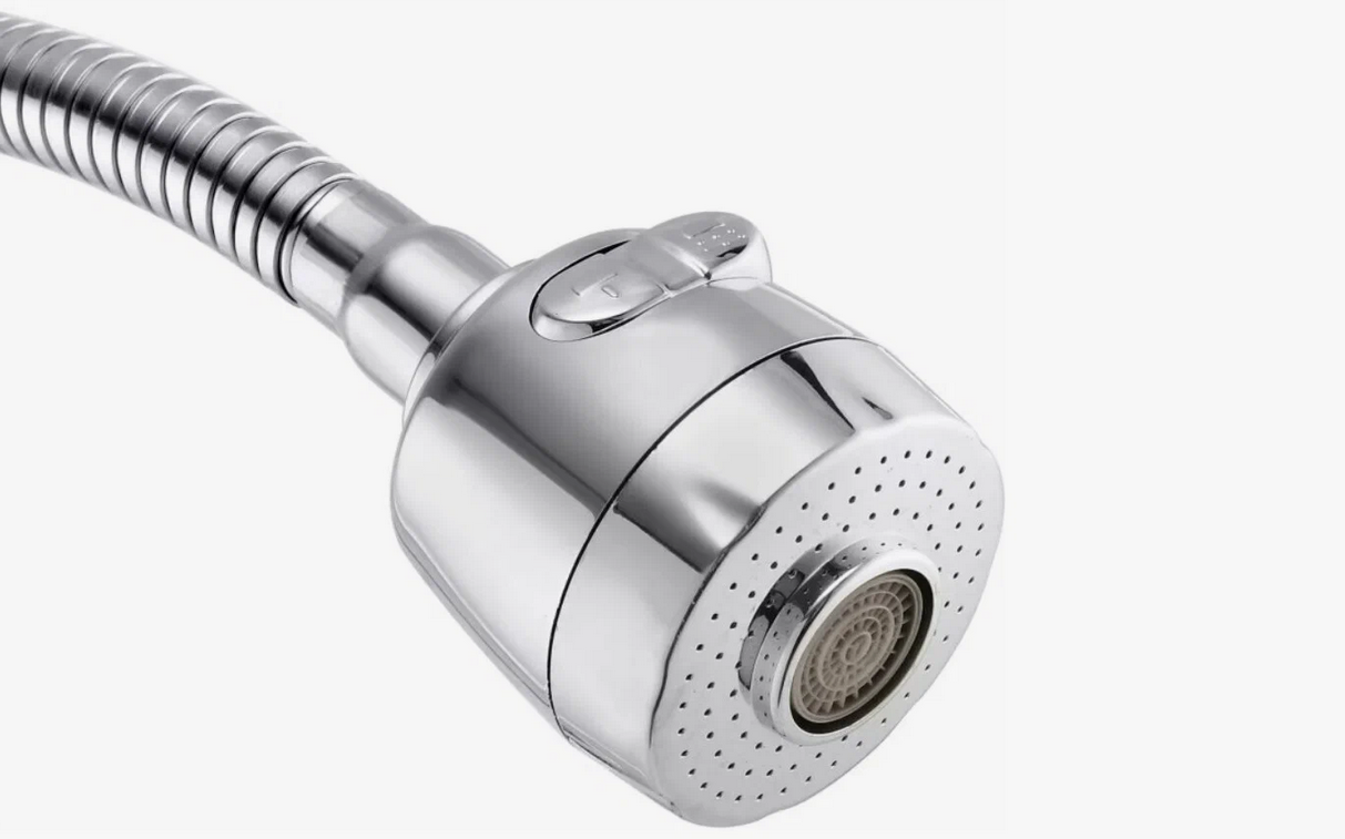 Излив для кухонного смесителя гибкий с водосберегающим аэратором (2 режима- струя и душ) и запасными кольцами. Совместим с любыми импортными смесителями. Длина 50см