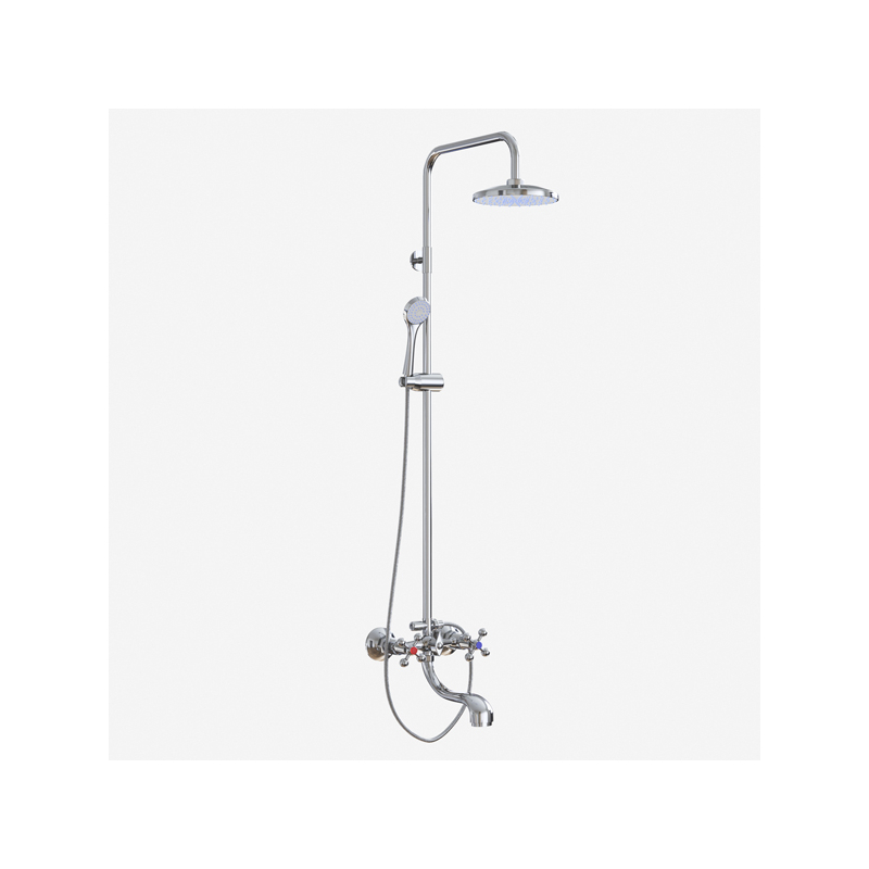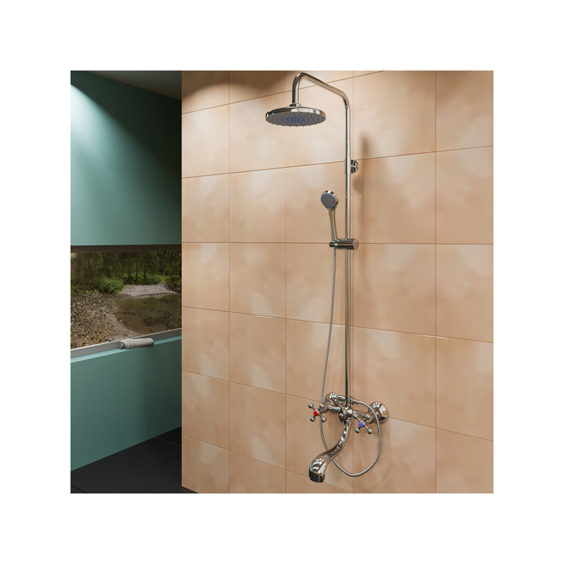 Душевая система с тропическим душем и покрытием хром выполнена из латуни, что обеспечивает её прочность.